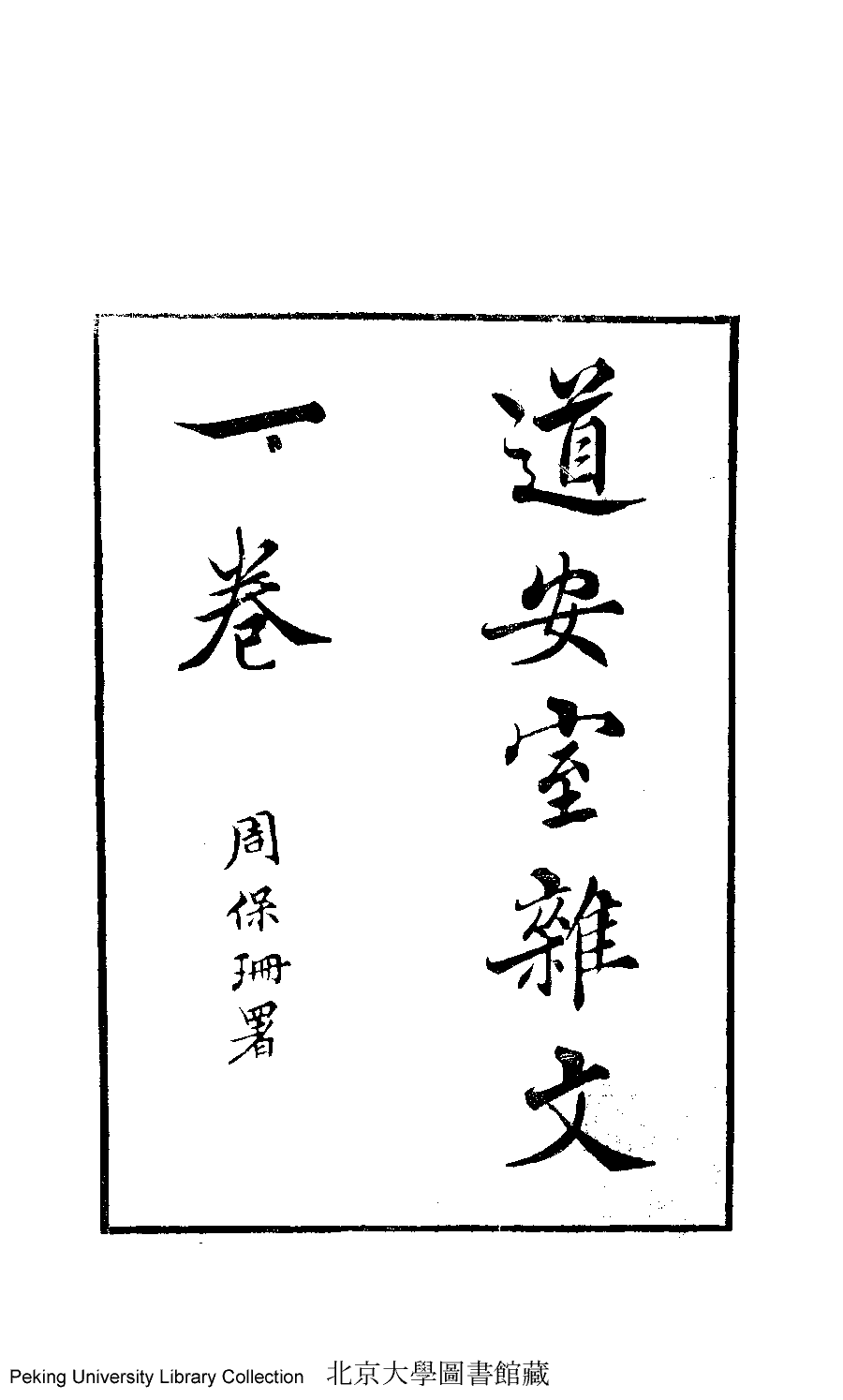 | 原書: 道安室雜文﹕一卷﹐蕭閒堂遺詩﹕一卷﹐戴花平安室詞﹕一卷﹐平安室雜記﹕ 一卷(清蕭道管撰) |