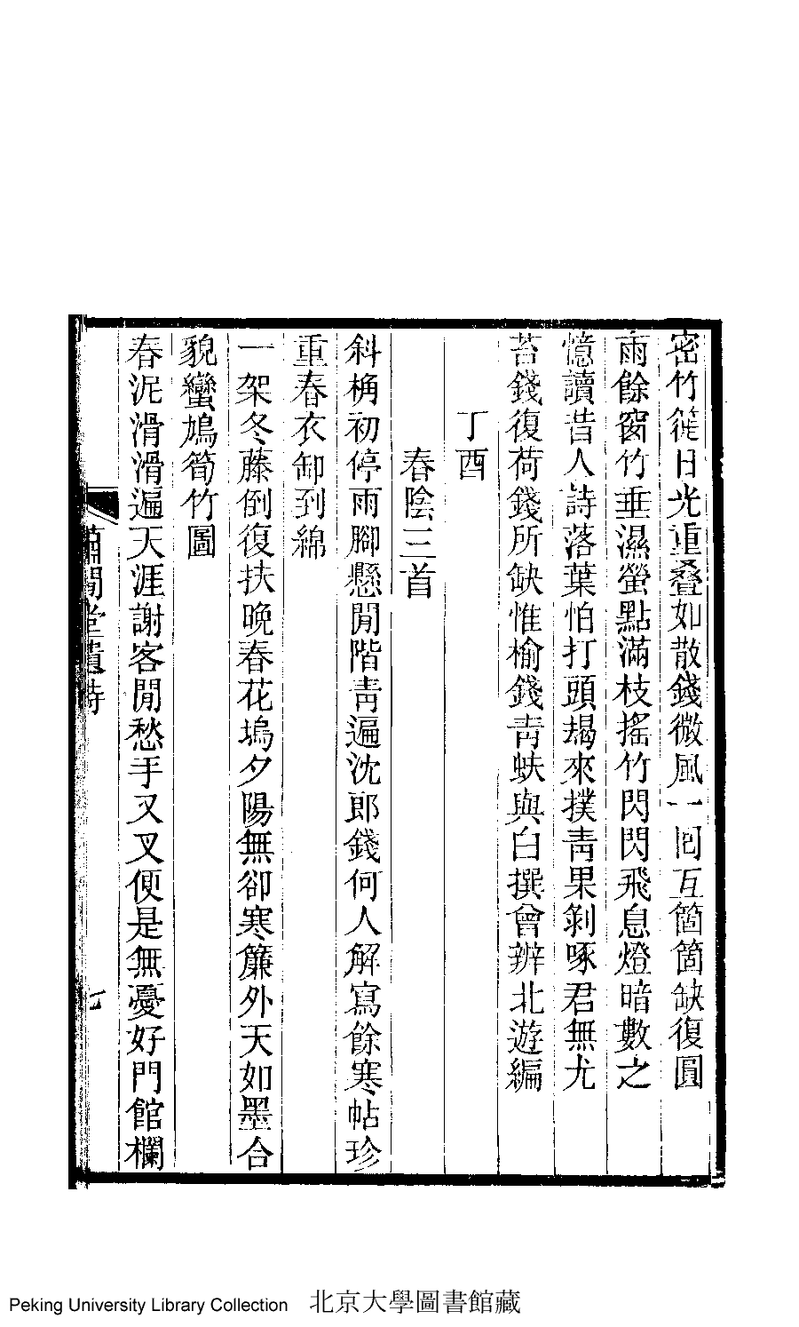 | (PRINT FRIENDLY VERSION) 道安室雜文﹕一卷﹐蕭閒堂遺詩﹕一卷﹐戴花平安室詞﹕一卷﹐平安室雜記﹕ 一卷(清蕭道管撰)。石遺室叢書光緒三十四年(1908)刊本 ![]() 頁碼 : 詩.7a | 点 击 放 大 | 道安室雜文﹕一卷﹐蕭閒堂遺詩﹕一卷﹐戴花平安室詞﹕一卷﹐平安室雜記﹕ 一卷(清蕭道管撰)。石遺室叢書光緒三十四年(1908)刊本![]() 頁碼 : 詩.6b | 点 击 放 大 | 返回 |