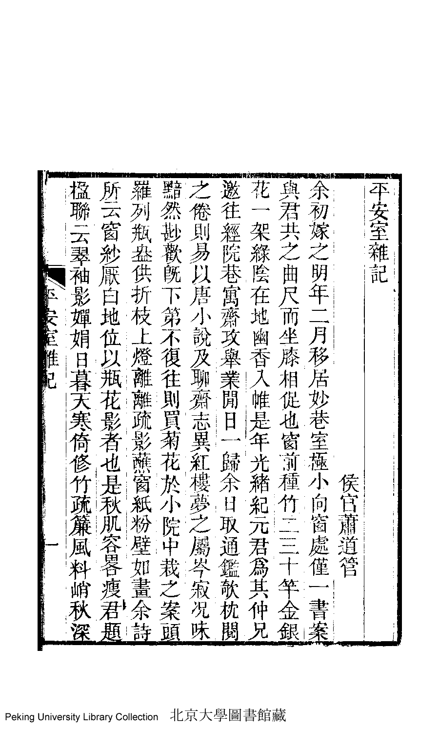 | 原書: 道安室雜文﹕一卷﹐蕭閒堂遺詩﹕一卷﹐戴花平安室詞﹕一卷﹐平安室雜記﹕ 一卷(清蕭道管撰) |