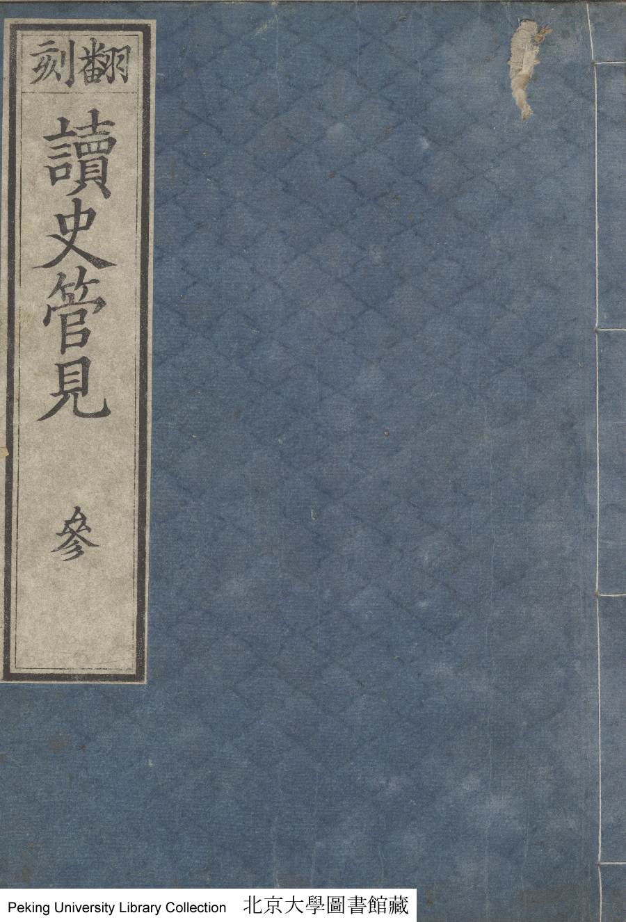 讀史管見﹕三卷(清李晚芳撰)。日本安政三年(1856)浪華書林群玉堂翻刻本