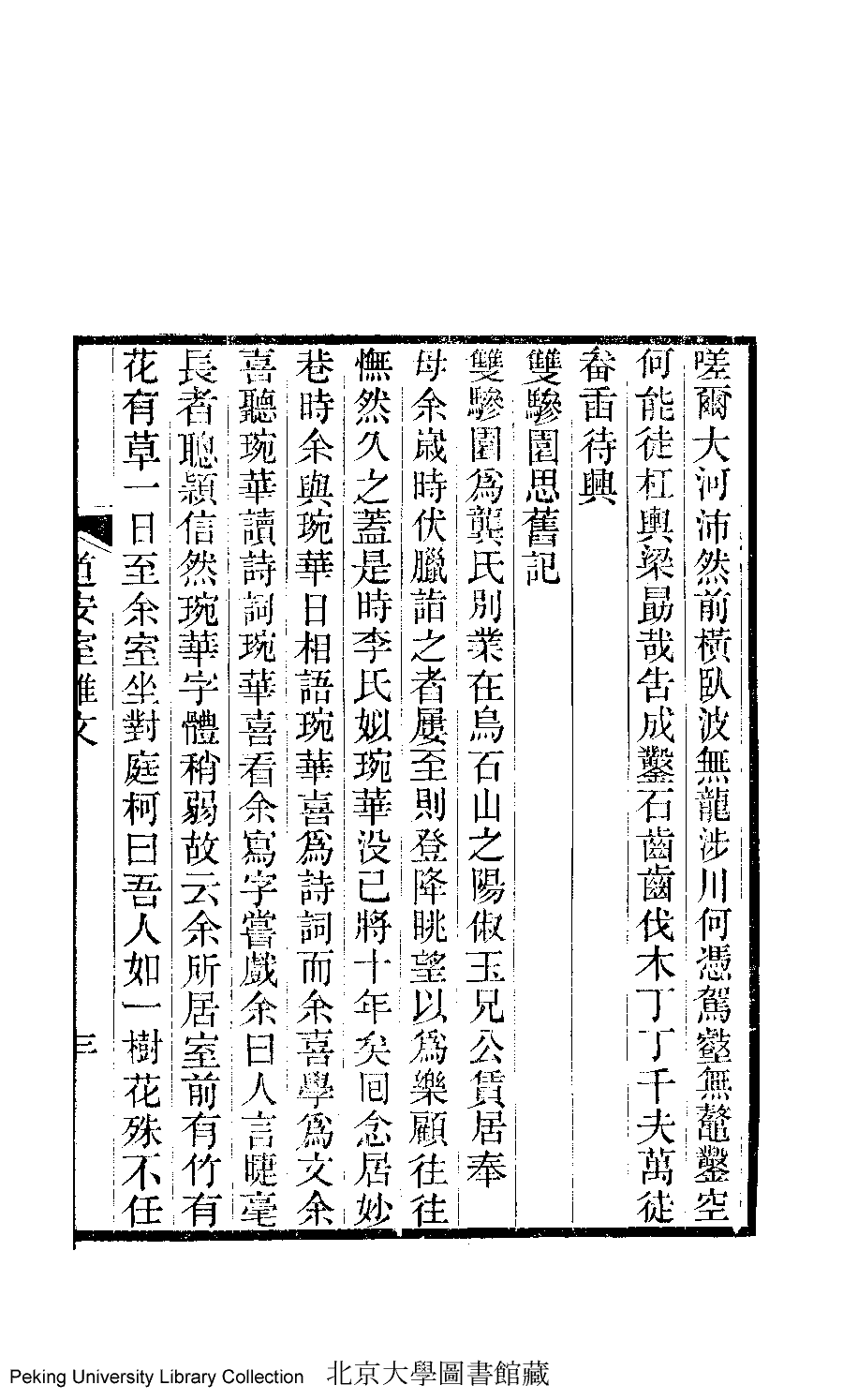 | 原書: 道安室雜文﹕一卷﹐蕭閒堂遺詩﹕一卷﹐戴花平安室詞﹕一卷﹐平安室雜記﹕ 一卷(清蕭道管撰) |