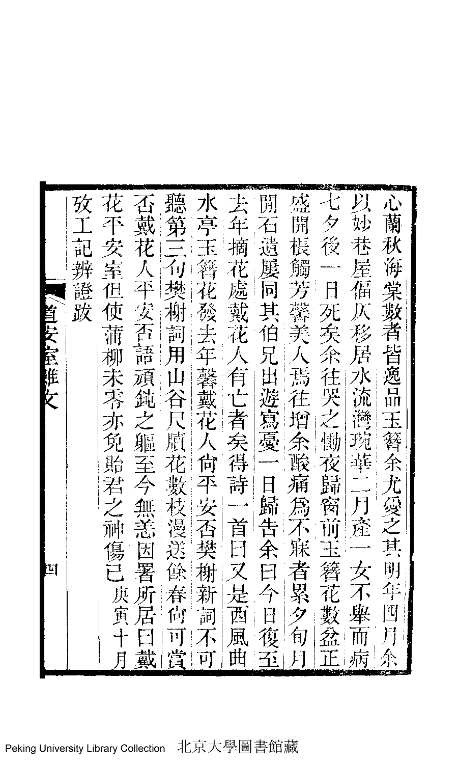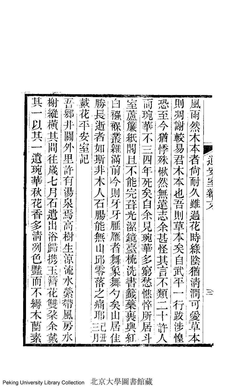 | (PRINT FRIENDLY VERSION) 道安室雜文﹕一卷﹐蕭閒堂遺詩﹕一卷﹐戴花平安室詞﹕一卷﹐平安室雜記﹕ 一卷(清蕭道管撰)。石遺室叢書光緒三十四年(1908)刊本 ![]() 頁碼 : 文.4a | 点 击 放 大 | 道安室雜文﹕一卷﹐蕭閒堂遺詩﹕一卷﹐戴花平安室詞﹕一卷﹐平安室雜記﹕ 一卷(清蕭道管撰)。石遺室叢書光緒三十四年(1908)刊本![]() 頁碼 : 文.3b | 点 击 放 大 | 返回 |