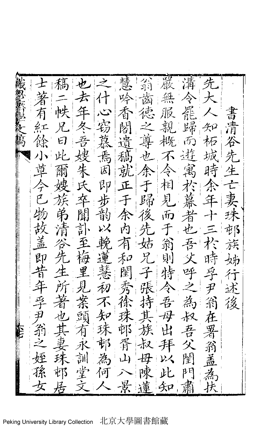 詩詞 [書清谷先生亡妻珠邨族姊行述後]