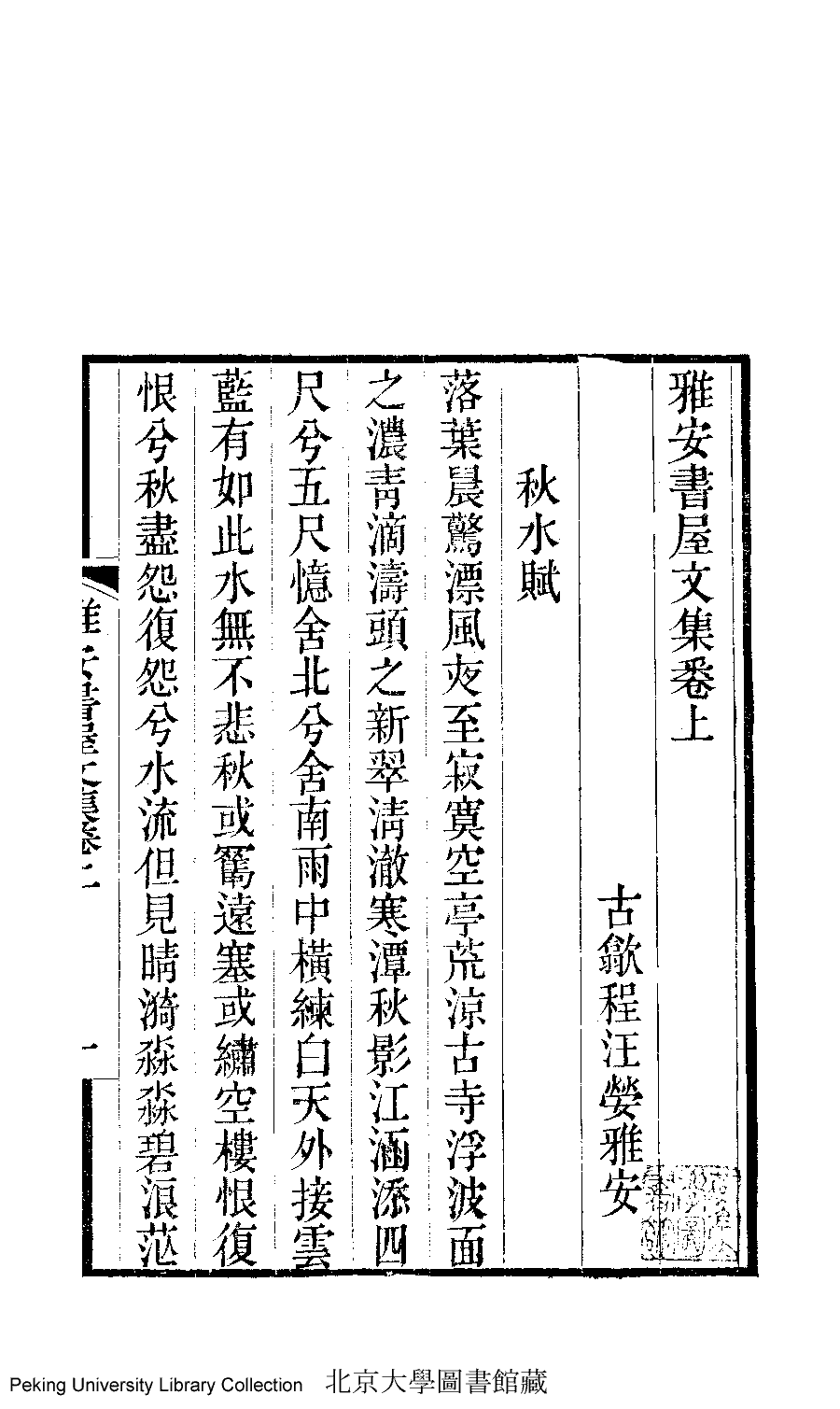 | 原書: 雅安書屋文集﹕二卷(清汪嫈撰) |