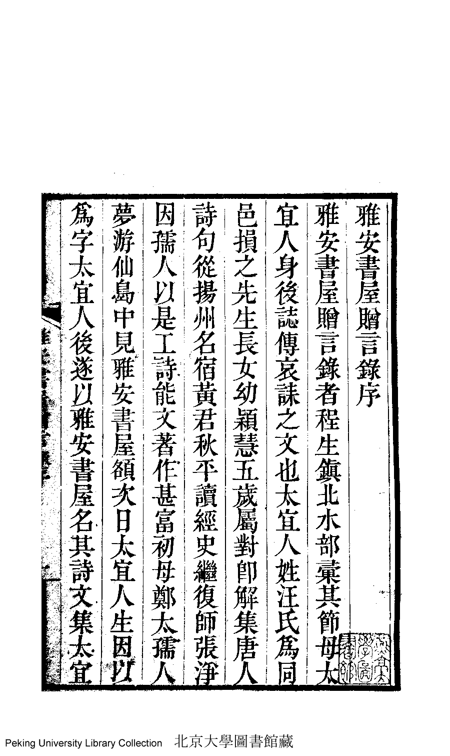 | 原書: 雅安書屋文集﹕二卷(清汪嫈撰) |