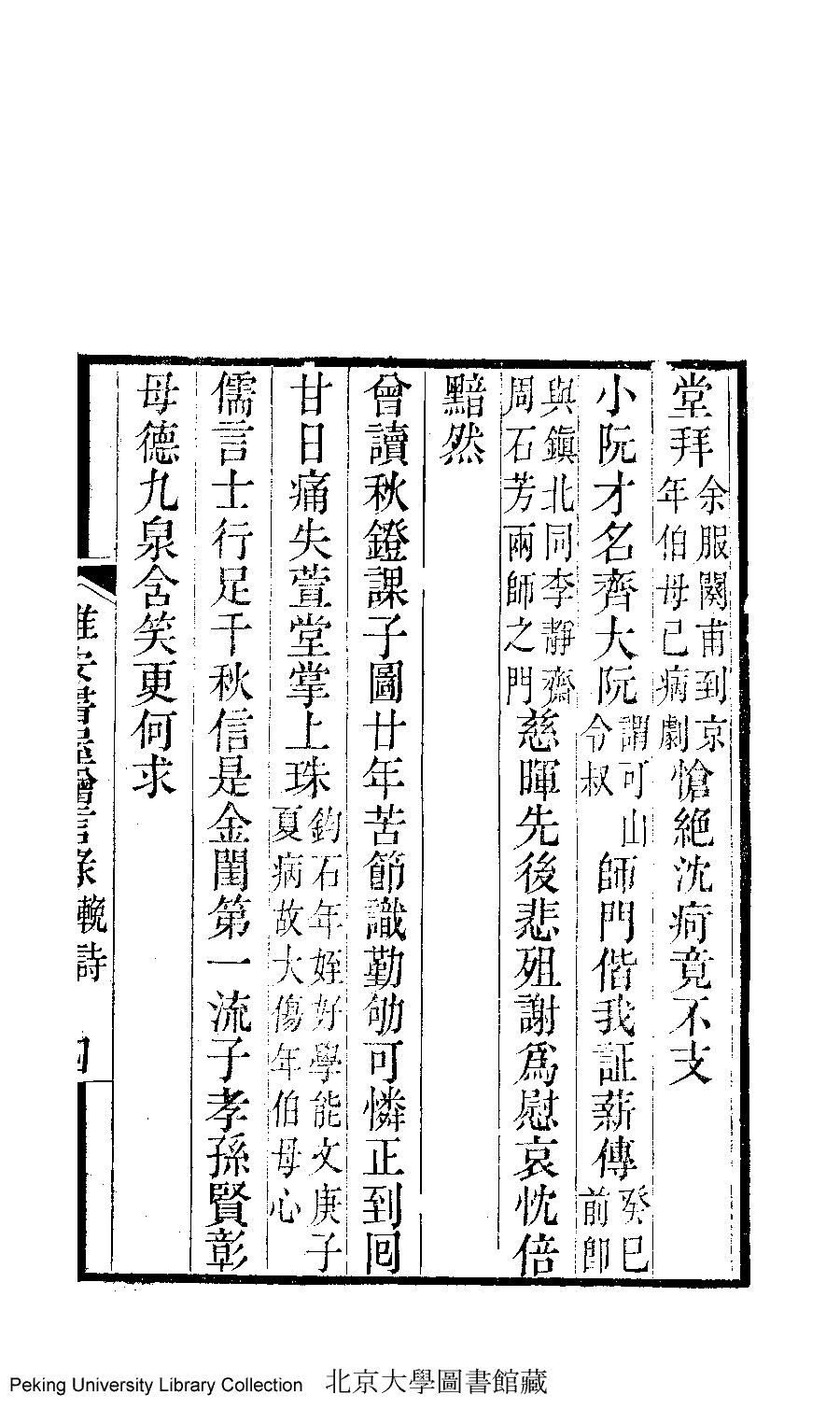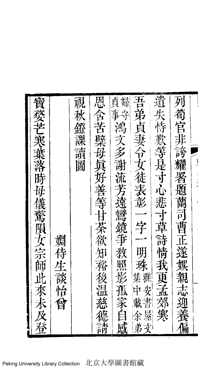 | (PRINT FRIENDLY VERSION) 雅安書屋文集﹕二卷(清汪嫈撰)。道光甲辰(1844)刊本 ![]() 頁碼 : 輓詩.4b | 点 击 放 大 | 雅安書屋文集﹕二卷(清汪嫈撰)。道光甲辰(1844)刊本![]() 頁碼 : 輓詩.4a | 点 击 放 大 | 雅安書屋文集﹕二卷(清汪嫈撰)。道光甲辰(1844)刊本![]() 頁碼 : 輓詩.3b | 点 击 放 大 | 返回 |
