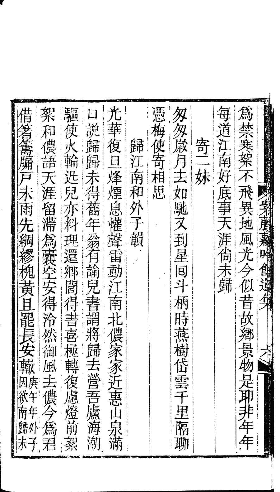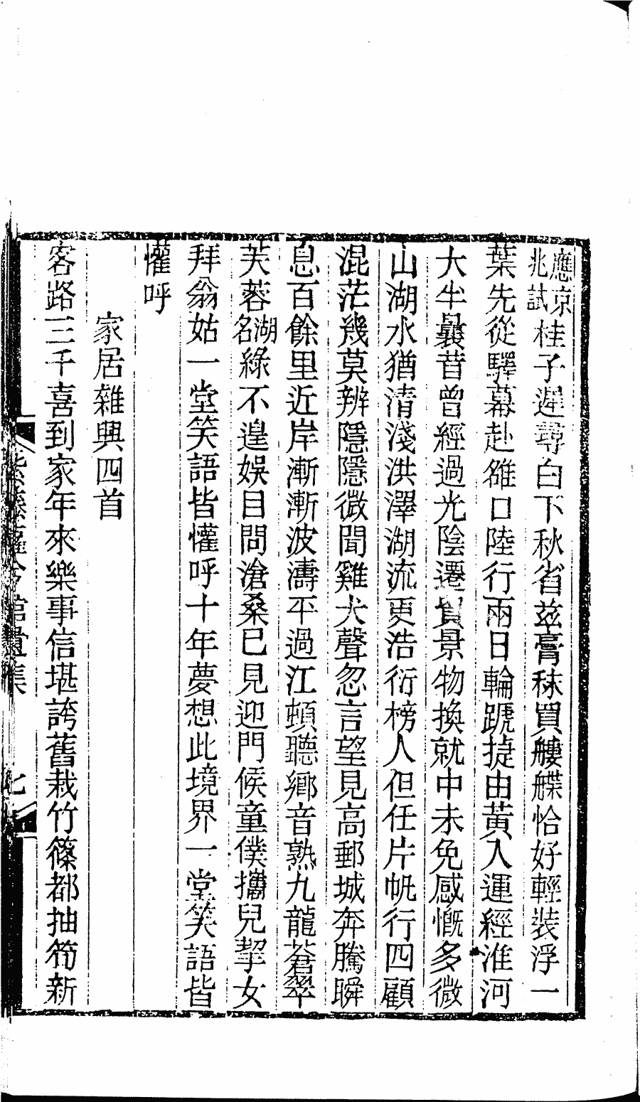 | (PRINT FRIENDLY VERSION) 紫藤蘿吟館遺集﹕一卷(清章婉儀撰)。清光緒二十一年(1895)刻本 ![]() 頁碼 : 詩.7a | 点 击 放 大 | 紫藤蘿吟館遺集﹕一卷(清章婉儀撰)。清光緒二十一年(1895)刻本![]() 頁碼 : 詩.6b | 点 击 放 大 | 返回 |