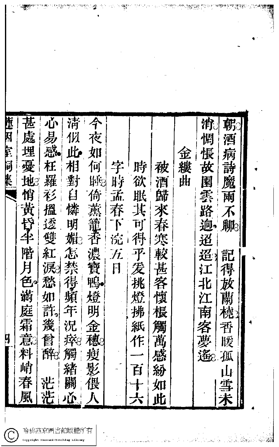 | (PRINT FRIENDLY VERSION) 蓮因室詩集﹕二卷﹐詞集﹕一卷(清鄭蘭孫撰)。清光緒元年(1875)刻本 ![]() 頁碼 : 3.4b | 点 击 放 大 | 蓮因室詩集﹕二卷﹐詞集﹕一卷(清鄭蘭孫撰)。清光緒元年(1875)刻本![]() 頁碼 : 3.4a | 点 击 放 大 | 返回 |