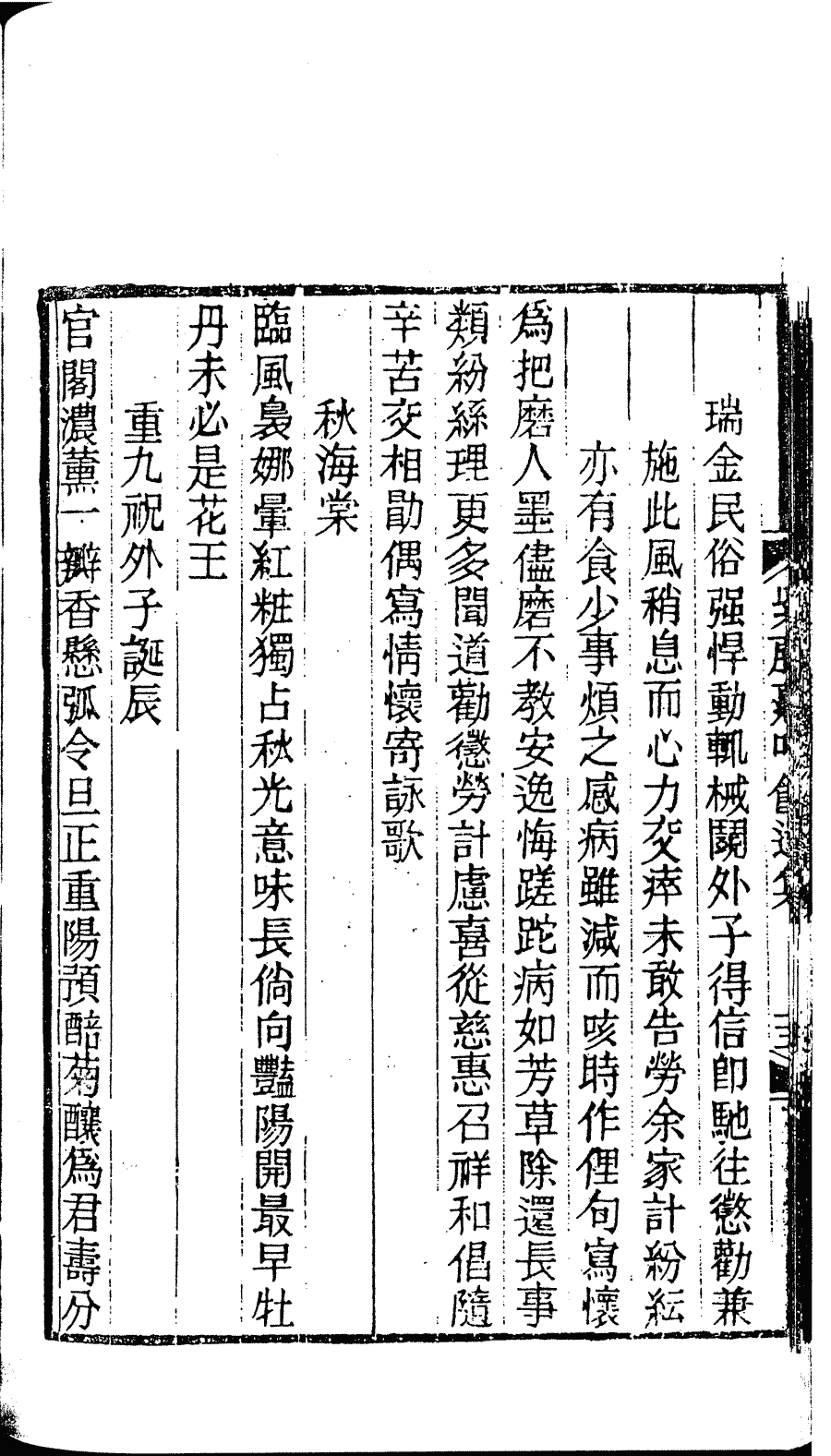 | (PRINT FRIENDLY VERSION) 紫藤蘿吟館遺集﹕一卷(清章婉儀撰)。清光緒二十一年(1895)刻本 ![]() 頁碼 : 詩.15b | 点 击 放 大 | 返回 |