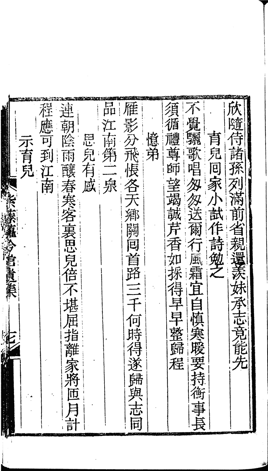 | (PRINT FRIENDLY VERSION) 紫藤蘿吟館遺集﹕一卷(清章婉儀撰)。清光緒二十一年(1895)刻本 ![]() 頁碼 : 詩.17b | 点 击 放 大 | 紫藤蘿吟館遺集﹕一卷(清章婉儀撰)。清光緒二十一年(1895)刻本![]() 頁碼 : 詩.17a | 点 击 放 大 | 返回 |