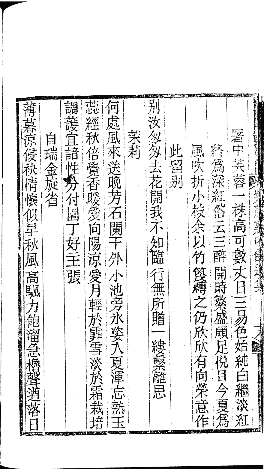 | (PRINT FRIENDLY VERSION) 紫藤蘿吟館遺集﹕一卷(清章婉儀撰)。清光緒二十一年(1895)刻本 ![]() 頁碼 : 詩.18b | 点 击 放 大 | 返回 |