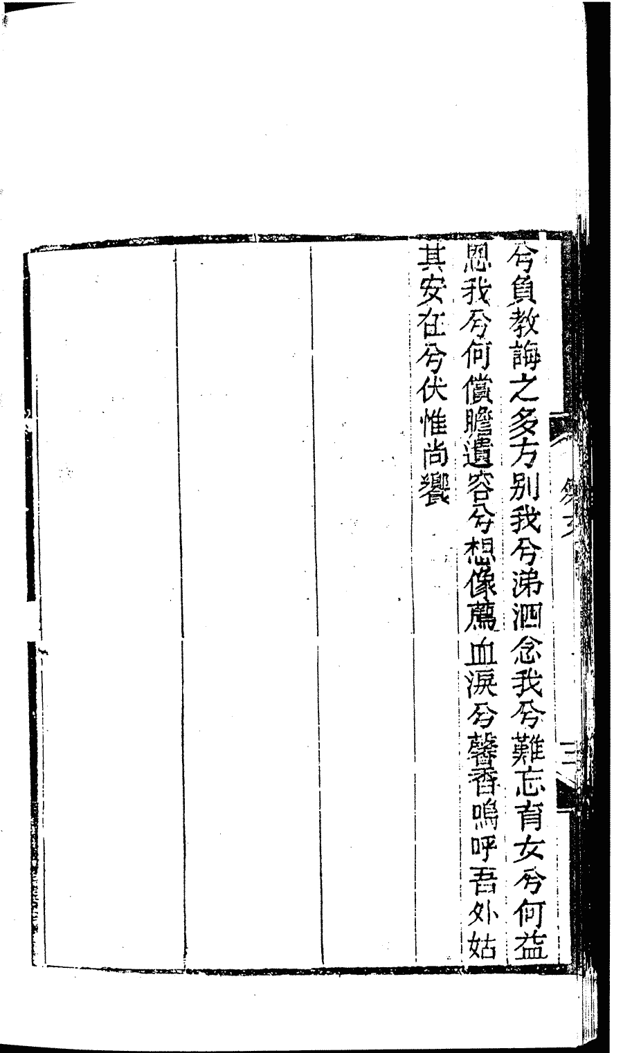 | (PRINT FRIENDLY VERSION) 紫藤蘿吟館遺集﹕一卷(清章婉儀撰)。清光緒二十一年(1895)刻本 ![]() 頁碼 : 祭文.3b | 点 击 放 大 | 紫藤蘿吟館遺集﹕一卷(清章婉儀撰)。清光緒二十一年(1895)刻本![]() 頁碼 : 祭文.3a | 点 击 放 大 | 返回 |