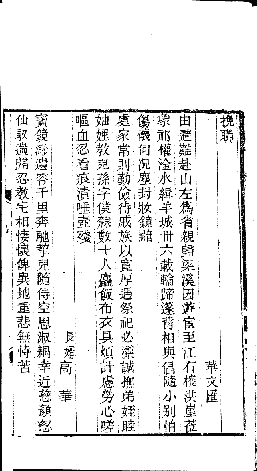 | (PRINT FRIENDLY VERSION) 紫藤蘿吟館遺集﹕一卷(清章婉儀撰)。清光緒二十一年(1895)刻本 ![]() 頁碼 : 挽聯.1b | 点 击 放 大 | 紫藤蘿吟館遺集﹕一卷(清章婉儀撰)。清光緒二十一年(1895)刻本![]() 頁碼 : 挽聯.1a | 点 击 放 大 | 返回 |