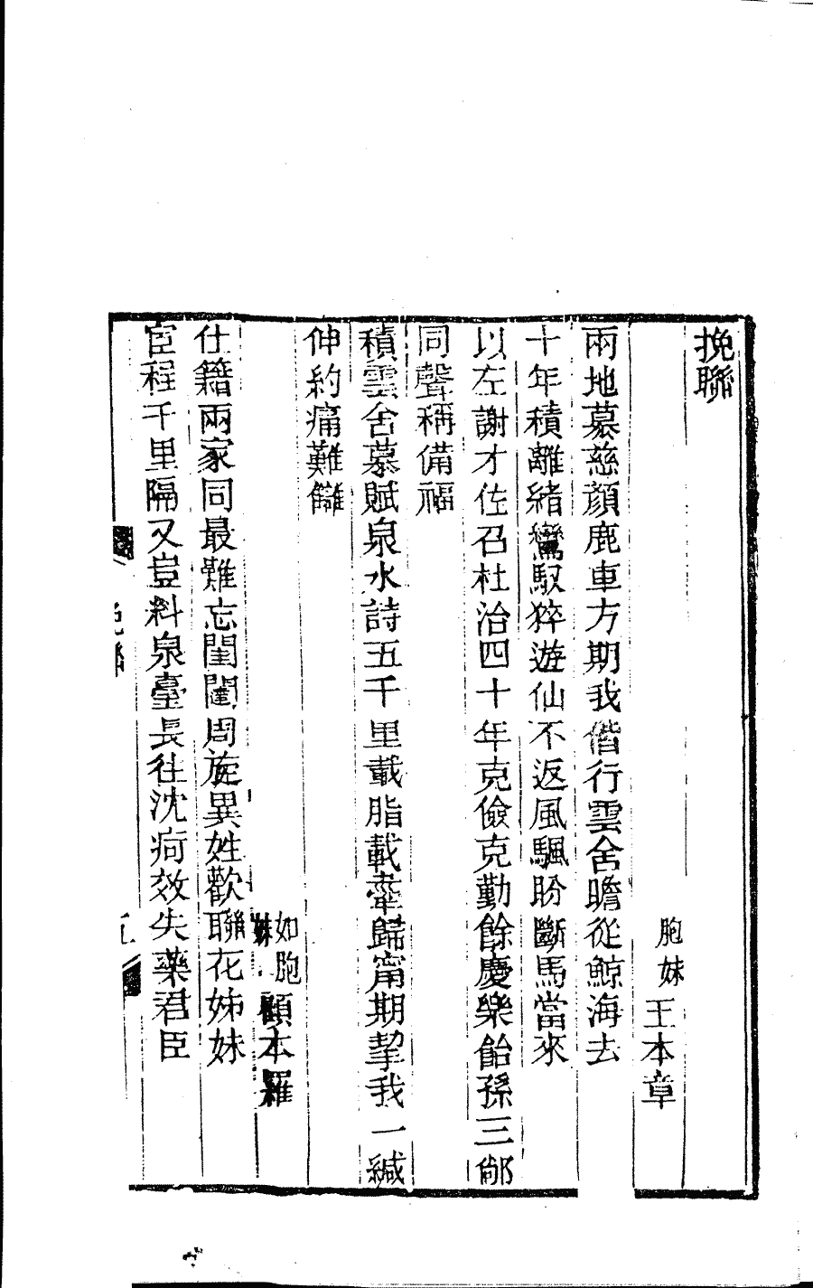| (PRINT FRIENDLY VERSION) 紫藤蘿吟館遺集﹕一卷(清章婉儀撰)。清光緒二十一年(1895)刻本 ![]() 頁碼 : 挽聯.5b | 点 击 放 大 | 紫藤蘿吟館遺集﹕一卷(清章婉儀撰)。清光緒二十一年(1895)刻本![]() 頁碼 : 挽聯.5a | 点 击 放 大 | 返回 |