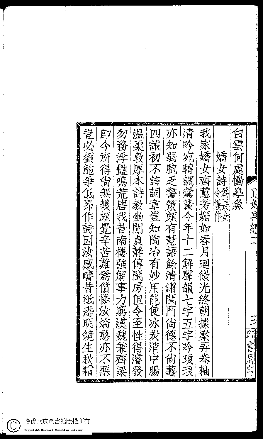| (PRINT FRIENDLY VERSION) 閨秀正始再續集(民國單士釐輯)。民國元年(1911)活字印本 ![]() 頁碼 : 二.3b | 点 击 放 大 | 閨秀正始再續集(民國單士釐輯)。民國元年(1911)活字印本![]() 頁碼 : 二.3a | 点 击 放 大 | 返回 |