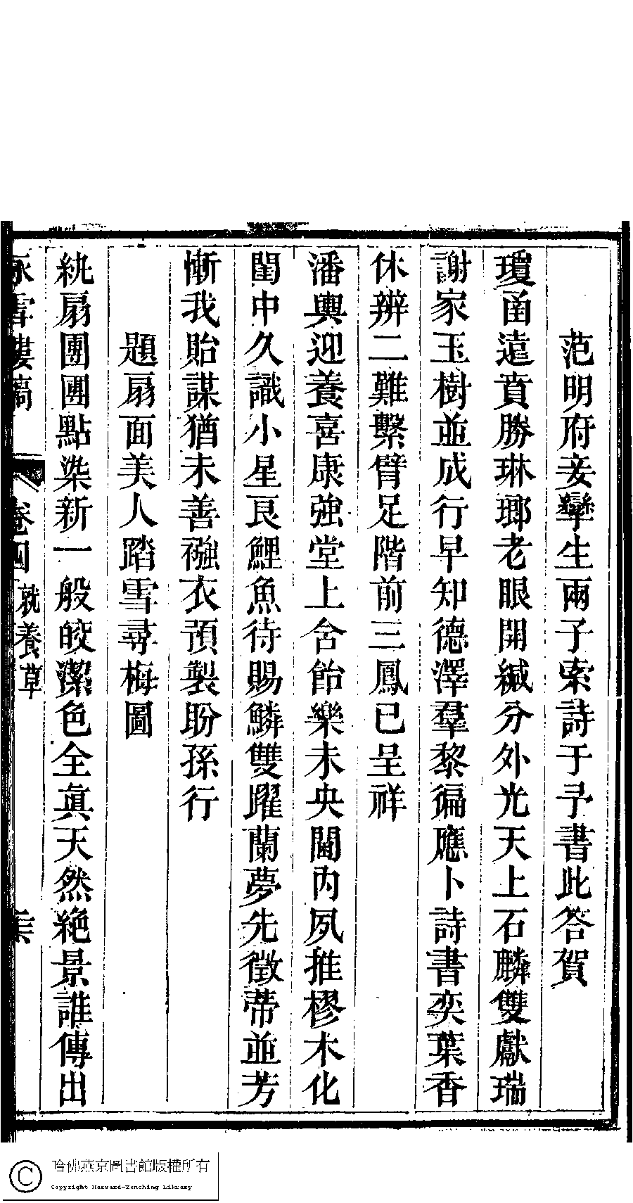 詩詞 [范明府妾孿生兩子索詩于予書此答賀(二首)]