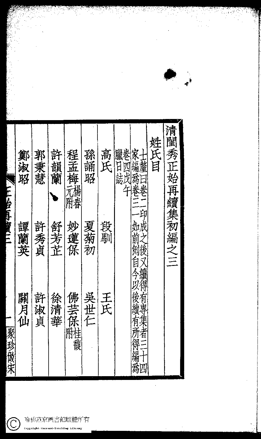 詩詞 [清閨秀正始再續集初篇之三姓氏目]