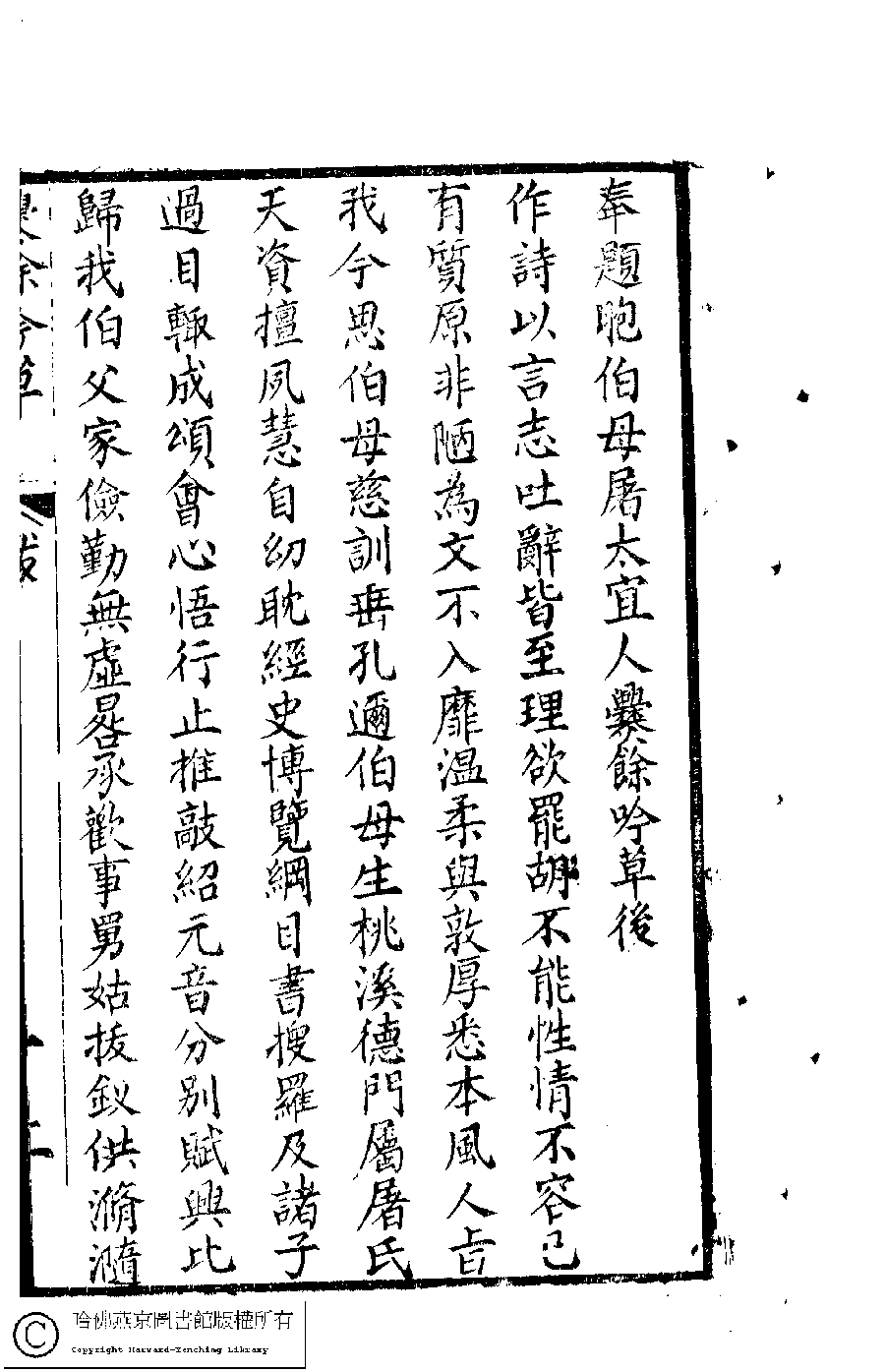 詩詞 [奉題胞伯母屠太宜人爨餘吟草後]