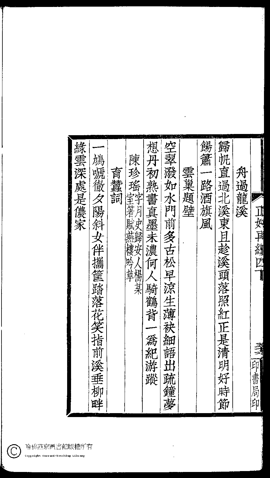 | (PRINT FRIENDLY VERSION) 閨秀正始再續集(民國單士釐輯)。民國元年(1911)活字印本 ![]() 頁碼 : 四下.57a | 点 击 放 大 | 閨秀正始再續集(民國單士釐輯)。民國元年(1911)活字印本![]() 頁碼 : 四下.56b | 点 击 放 大 | 返回 |