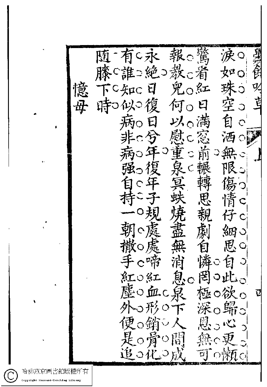 | (PRINT FRIENDLY VERSION) 爨餘吟﹕二卷(清屠鏡心撰)。清同治九年(1870)刻本 ![]() 頁碼 : 1.5a | 点 击 放 大 | 爨餘吟﹕二卷(清屠鏡心撰)。清同治九年(1870)刻本![]() 頁碼 : 1.4b | 点 击 放 大 | 返回 |