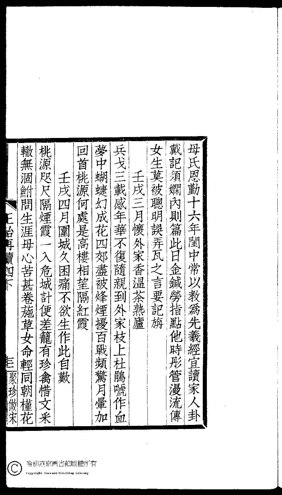 | (PRINT FRIENDLY VERSION) 閨秀正始再續集(民國單士釐輯)。民國元年(1911)活字印本 ![]() 頁碼 : 四下.71a | 点 击 放 大 | 返回 |
