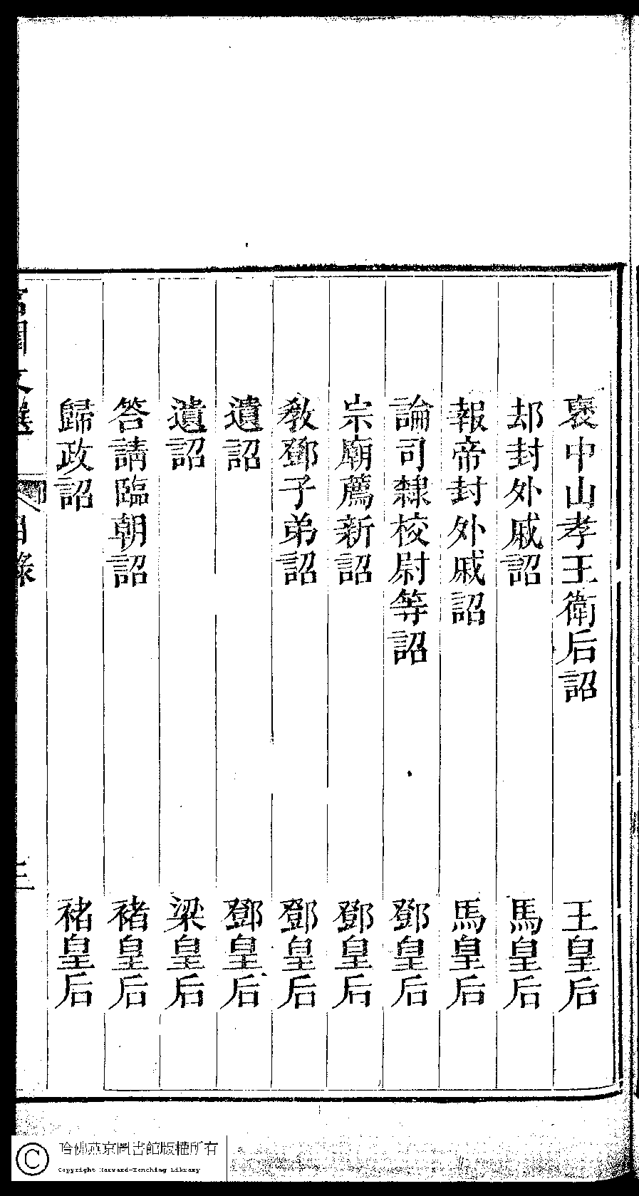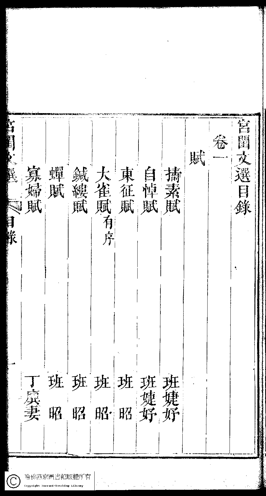 宮閨文選:二十六卷,姓氏小錄 : 一卷(清周壽昌輯訂)![]() 頁碼 : 目錄.4b | 点 击 放 大 | 宮閨文選:二十六卷,姓氏小錄 : 一卷(清周壽昌輯訂)![]() 頁碼 : 目錄.4a | 点 击 放 大 | 宮閨文選:二十六卷,姓氏小錄 : 一卷(清周壽昌輯訂)![]() 頁碼 : 目錄.3b | 点 击 放 大 | 宮閨文選:二十六卷,姓氏小錄 : 一卷(清周壽昌輯訂)![]() 頁碼 : 目錄.3a | 点 击 放 大 | 第 1 頁 13 | 返回 | << | < | > | >> |