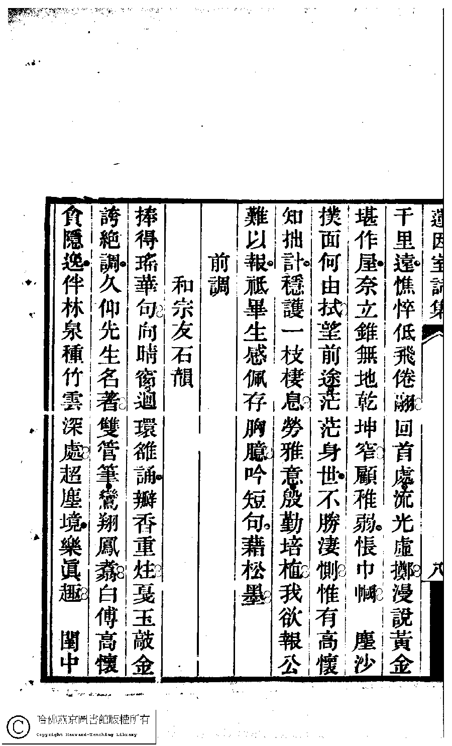 | (PRINT FRIENDLY VERSION) 蓮因室詩集﹕二卷﹐詞集﹕一卷(清鄭蘭孫撰)。清光緒元年(1875)刻本 ![]() 頁碼 : 3.9a | 点 击 放 大 | 蓮因室詩集﹕二卷﹐詞集﹕一卷(清鄭蘭孫撰)。清光緒元年(1875)刻本![]() 頁碼 : 3.8b | 点 击 放 大 | 返回 |