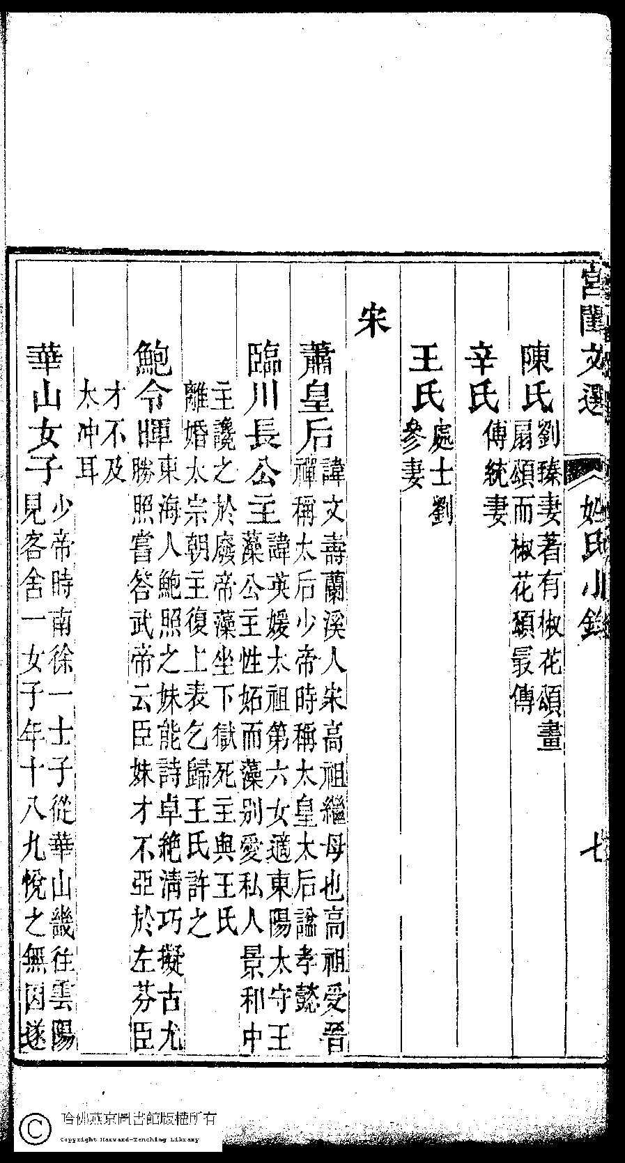 | (PRINT FRIENDLY VERSION) 宮閨文選:二十六卷,姓氏小錄 : 一卷(清周壽昌輯訂)。道光二十六年(1846)開雕 ![]() 頁碼 : 姓氏小錄.7b | 点 击 放 大 | 返回 |