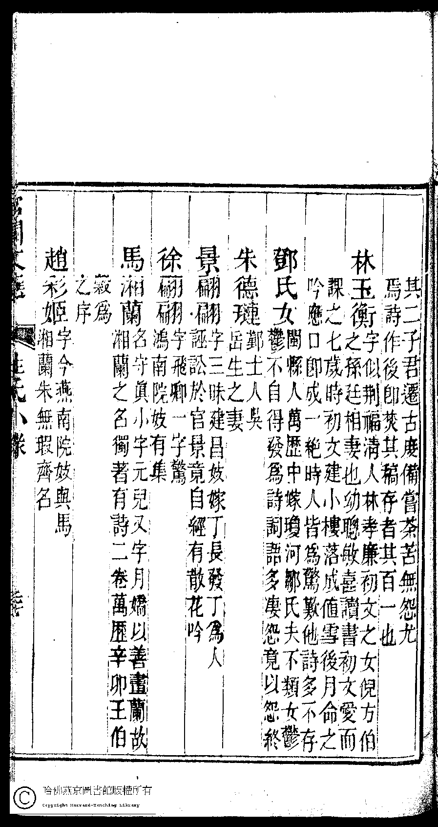 | (PRINT FRIENDLY VERSION) 宮閨文選:二十六卷,姓氏小錄 : 一卷(清周壽昌輯訂)。道光二十六年(1846)開雕 ![]() 頁碼 : 姓氏小錄.27a | 点 击 放 大 | 宮閨文選:二十六卷,姓氏小錄 : 一卷(清周壽昌輯訂)。道光二十六年(1846)開雕![]() 頁碼 : 姓氏小錄.26b | 点 击 放 大 | 返回 |