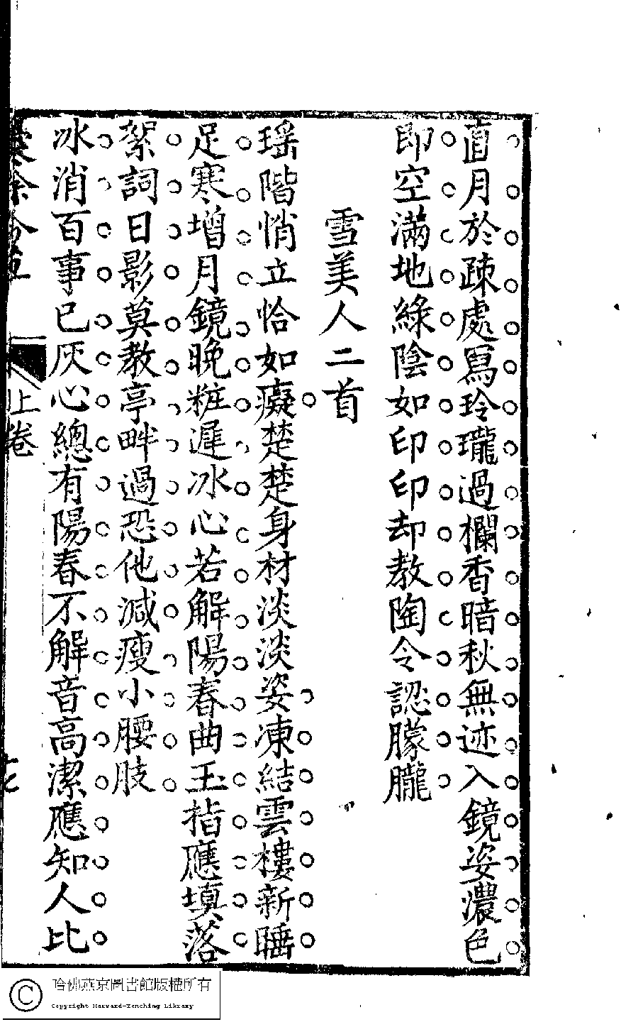 | (PRINT FRIENDLY VERSION) 爨餘吟﹕二卷(清屠鏡心撰)。清同治九年(1870)刻本 ![]() 頁碼 : 1.17a | 点 击 放 大 | 爨餘吟﹕二卷(清屠鏡心撰)。清同治九年(1870)刻本![]() 頁碼 : 1.16b | 点 击 放 大 | 返回 |