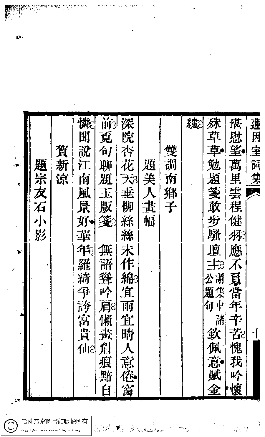 | 原書: 蓮因室詩集﹕二卷﹐詞集﹕一卷(清鄭蘭孫撰) |