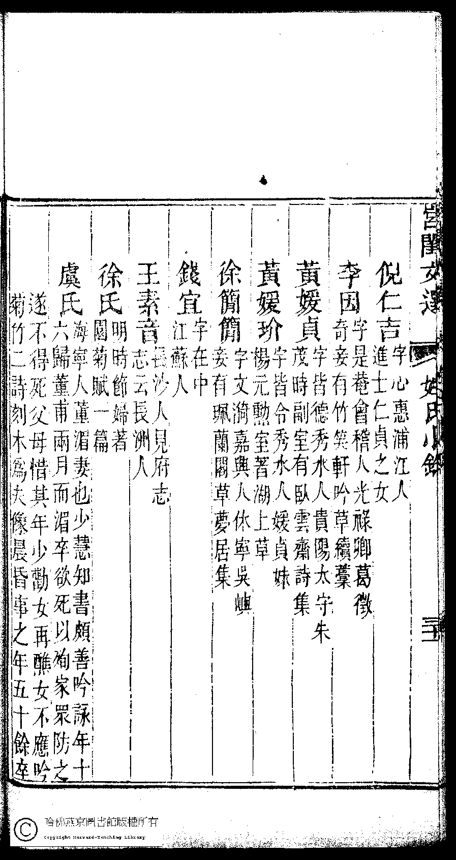 | (PRINT FRIENDLY VERSION) 宮閨文選:二十六卷,姓氏小錄 : 一卷(清周壽昌輯訂)。道光二十六年(1846)開雕 ![]() 頁碼 : 姓氏小錄.31b | 点 击 放 大 | 返回 |
