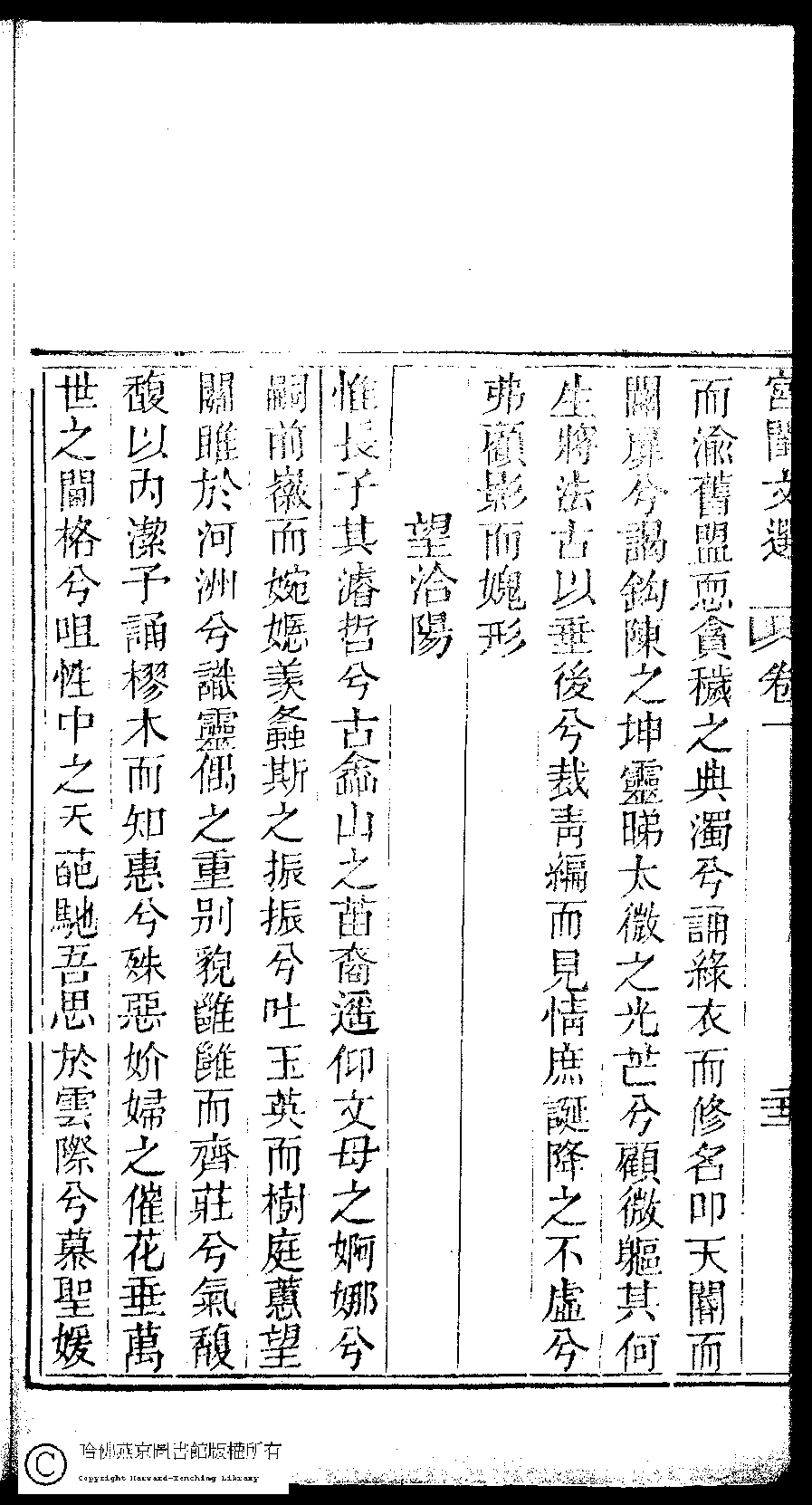 | (PRINT FRIENDLY VERSION) 宮閨文選:二十六卷,姓氏小錄 : 一卷(清周壽昌輯訂)。道光二十六年(1846)開雕 ![]() 頁碼 : 1.23a | 点 击 放 大 | 宮閨文選:二十六卷,姓氏小錄 : 一卷(清周壽昌輯訂)。道光二十六年(1846)開雕![]() 頁碼 : 1.22b | 点 击 放 大 | 返回 |