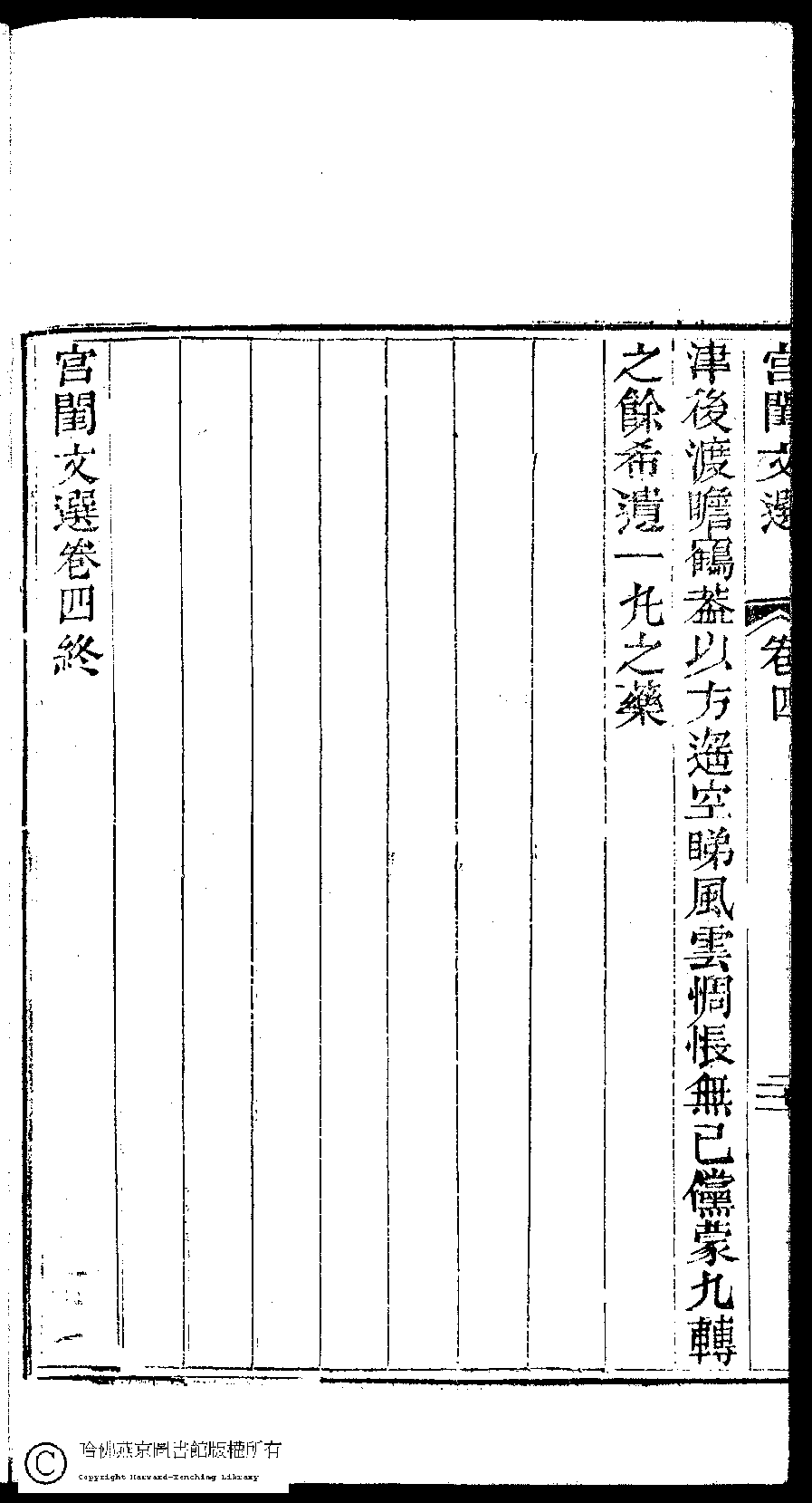 | (PRINT FRIENDLY VERSION) 宮閨文選:二十六卷,姓氏小錄 : 一卷(清周壽昌輯訂)。道光二十六年(1846)開雕 ![]() 頁碼 : 4.21b | 点 击 放 大 | 宮閨文選:二十六卷,姓氏小錄 : 一卷(清周壽昌輯訂)。道光二十六年(1846)開雕![]() 頁碼 : 4.21a | 点 击 放 大 | 返回 |