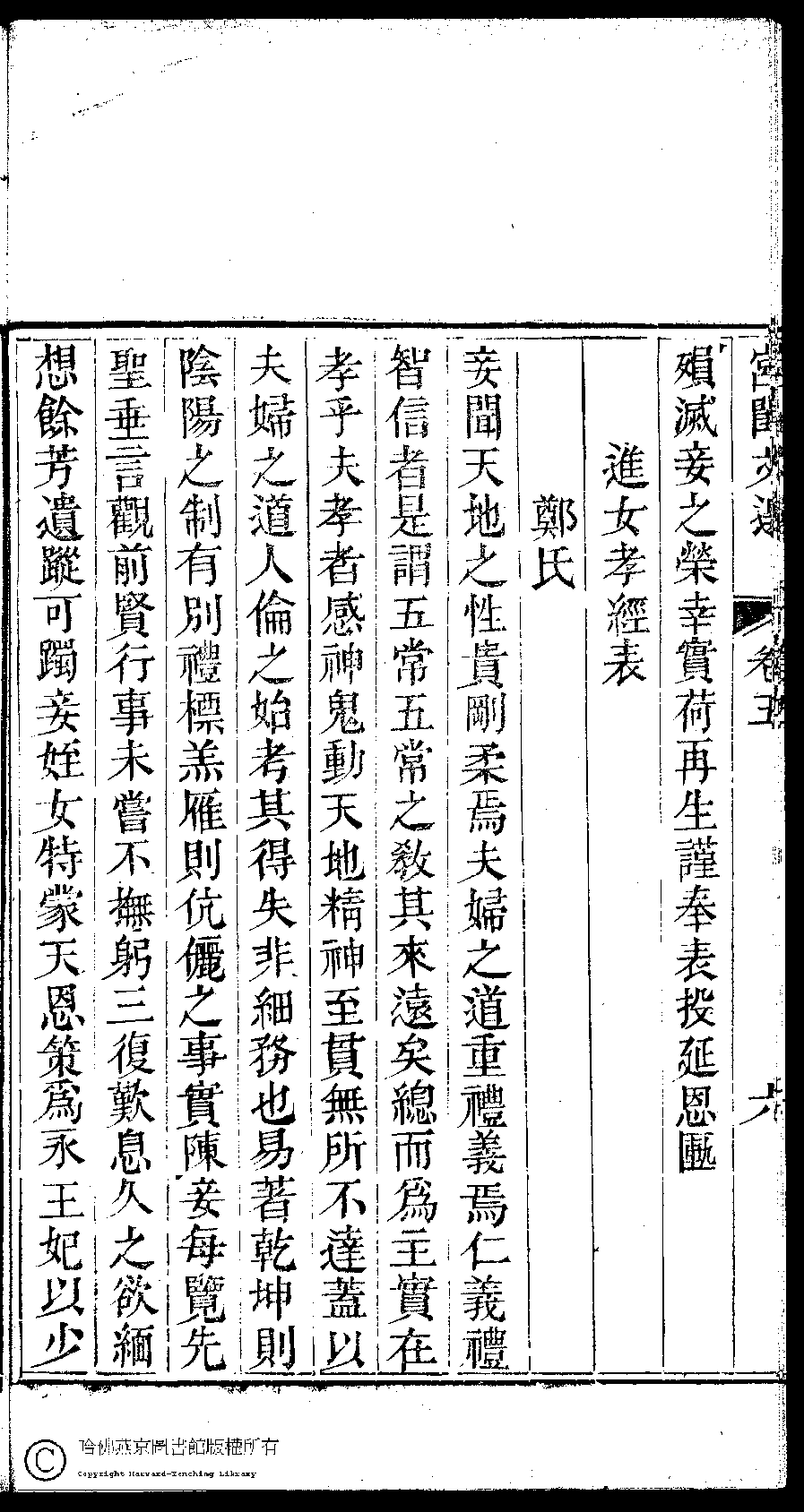 | (PRINT FRIENDLY VERSION) 宮閨文選:二十六卷,姓氏小錄 : 一卷(清周壽昌輯訂)。道光二十六年(1846)開雕 ![]() 頁碼 : 5.7a | 点 击 放 大 | 宮閨文選:二十六卷,姓氏小錄 : 一卷(清周壽昌輯訂)。道光二十六年(1846)開雕![]() 頁碼 : 5.6b | 点 击 放 大 | 返回 |