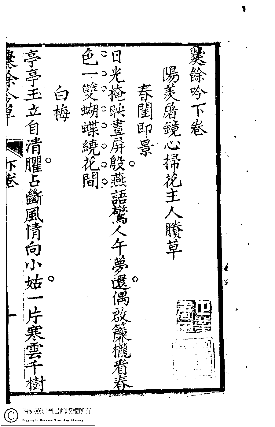 | 原書: 爨餘吟﹕二卷(清屠鏡心撰) |