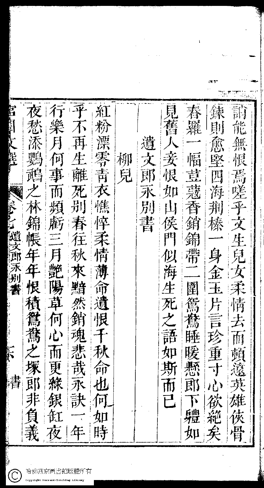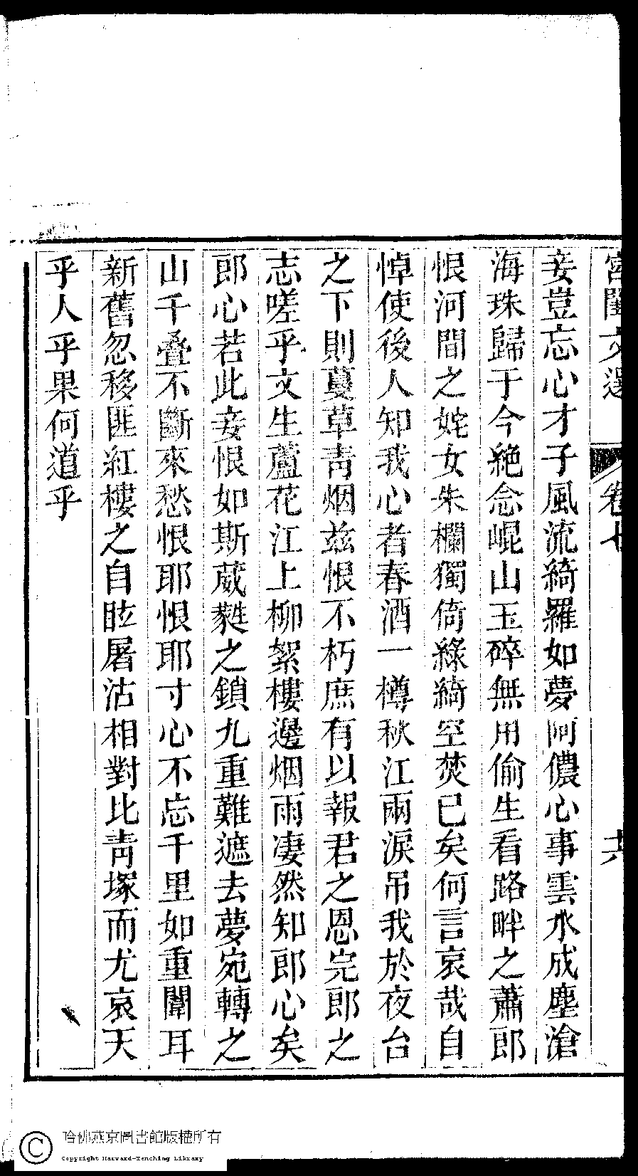 | (PRINT FRIENDLY VERSION) 宮閨文選:二十六卷,姓氏小錄 : 一卷(清周壽昌輯訂)。道光二十六年(1846)開雕 ![]() 頁碼 : 7.16b | 点 击 放 大 | 宮閨文選:二十六卷,姓氏小錄 : 一卷(清周壽昌輯訂)。道光二十六年(1846)開雕![]() 頁碼 : 7.16a | 点 击 放 大 | 返回 |