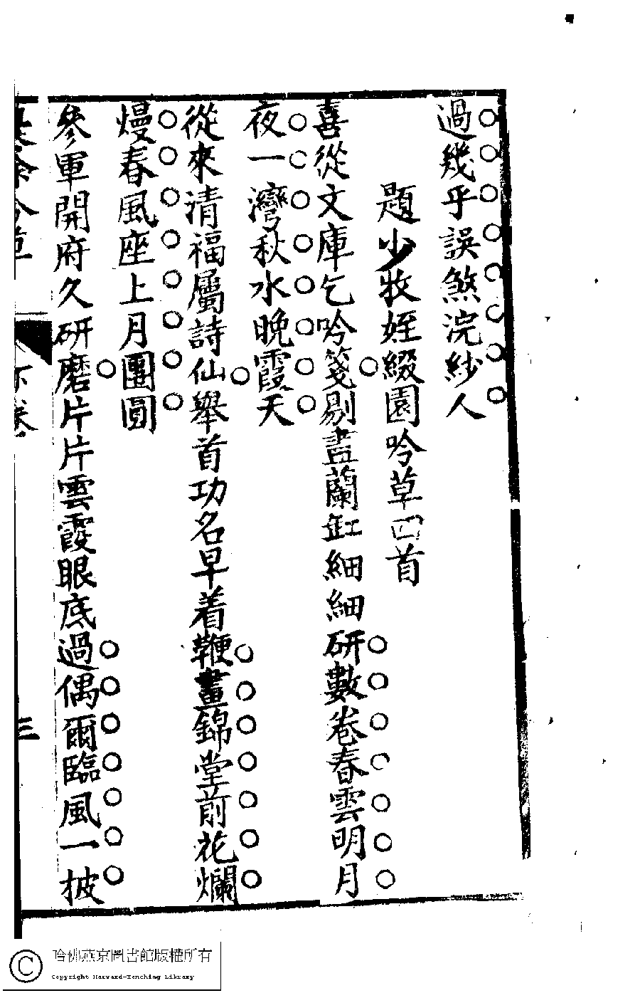 | (PRINT FRIENDLY VERSION) 爨餘吟﹕二卷(清屠鏡心撰)。清同治九年(1870)刻本 ![]() 頁碼 : 2.3b | 点 击 放 大 | 爨餘吟﹕二卷(清屠鏡心撰)。清同治九年(1870)刻本![]() 頁碼 : 2.3a | 点 击 放 大 | 返回 |