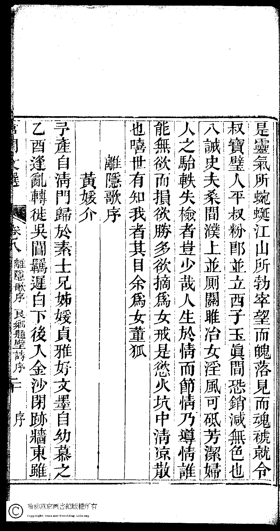 | (PRINT FRIENDLY VERSION) 宮閨文選:二十六卷,姓氏小錄 : 一卷(清周壽昌輯訂)。道光二十六年(1846)開雕 ![]() 頁碼 : 8.20b | 点 击 放 大 | 宮閨文選:二十六卷,姓氏小錄 : 一卷(清周壽昌輯訂)。道光二十六年(1846)開雕![]() 頁碼 : 8.20a | 点 击 放 大 | 返回 |