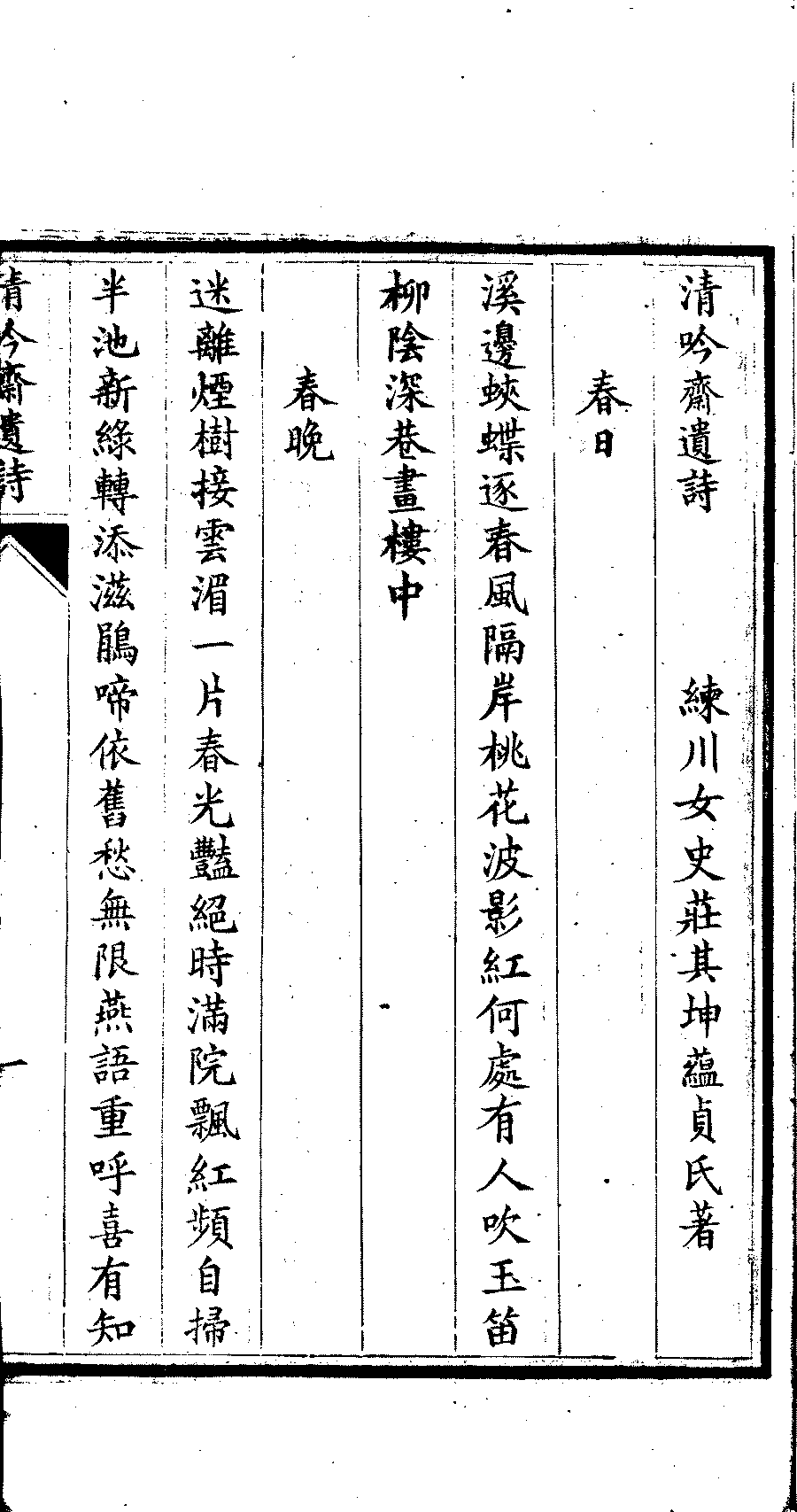 | 原書: 清吟齋遺詩(清莊其坤撰) |