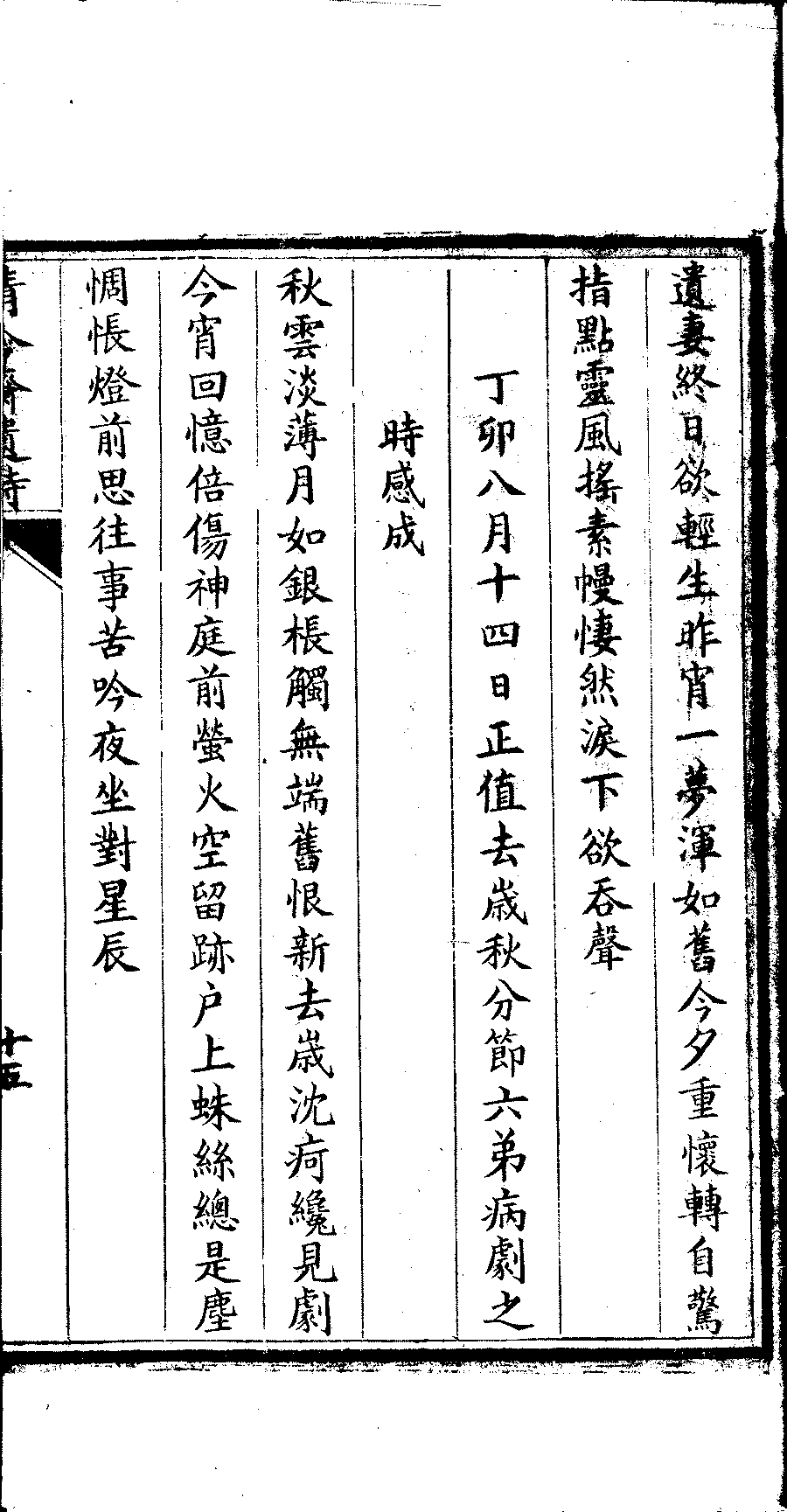 詩詞 [丁卯八月十四日正值去歲秋分節六弟病劇之時感成]