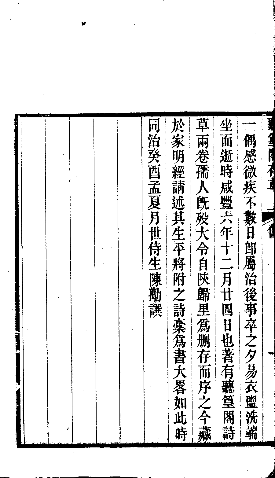 | (PRINT FRIENDLY VERSION) 聽簧閣存草(清洪暉堂撰)。光緒十三年(1887) 隨意軒刻本 ![]() 頁碼 : 洪孺人傳.1b | 点 击 放 大 | 聽簧閣存草(清洪暉堂撰)。光緒十三年(1887) 隨意軒刻本![]() 頁碼 : 洪孺人傳.1a | 点 击 放 大 | 返回 |