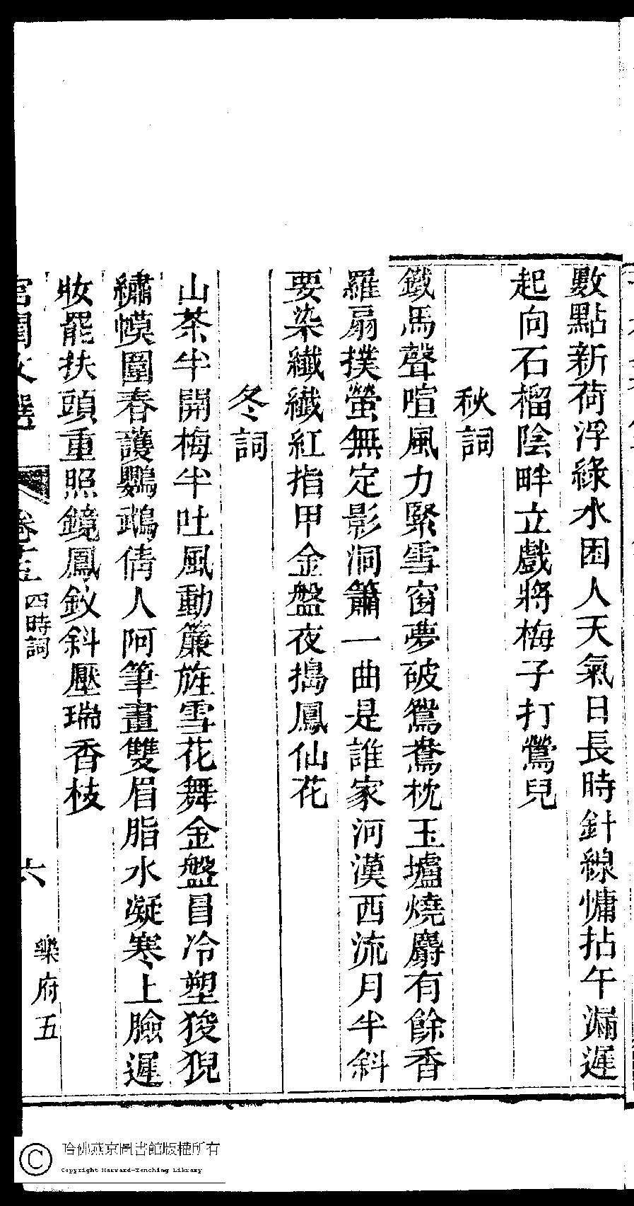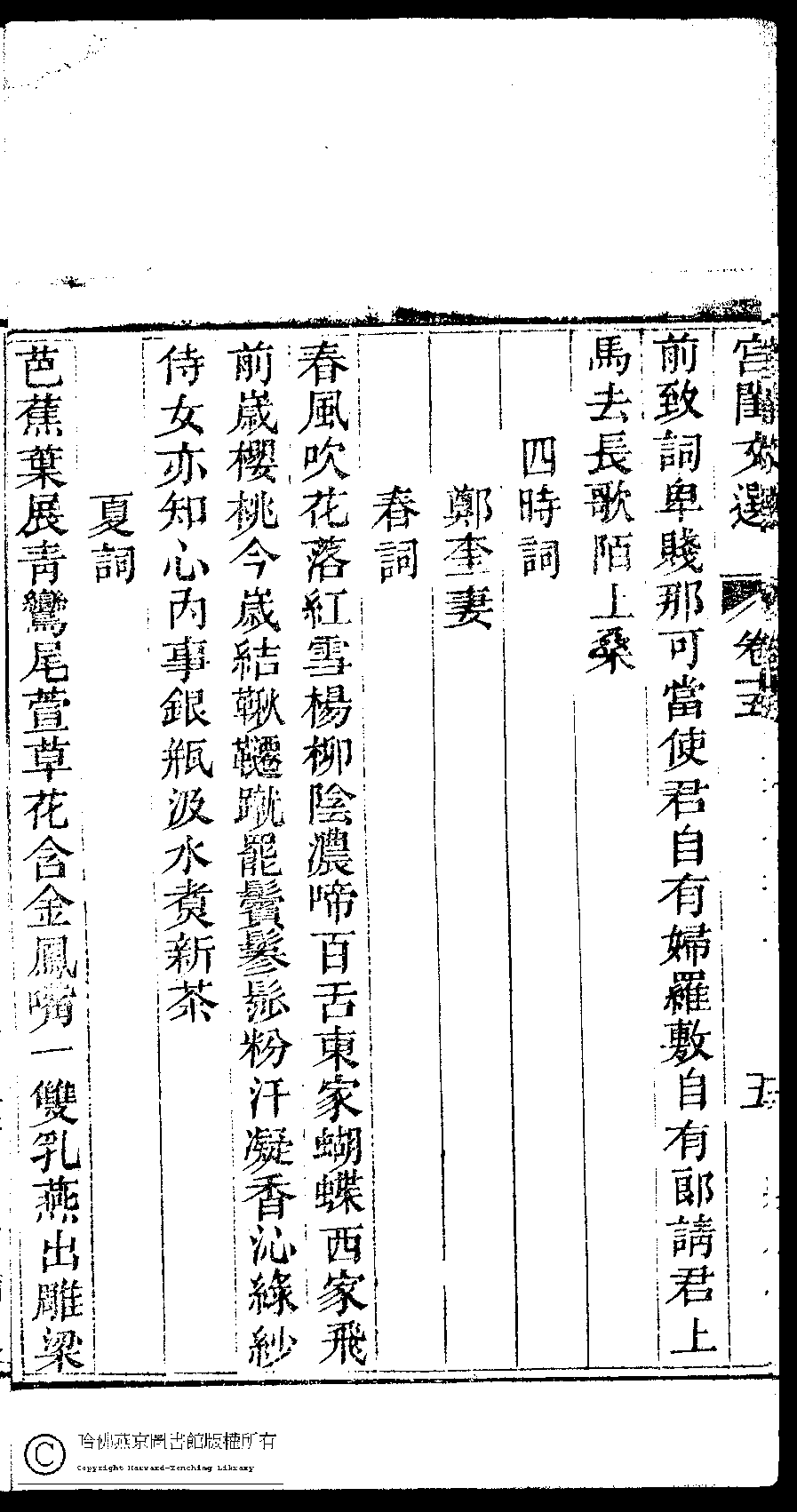 | (PRINT FRIENDLY VERSION) 宮閨文選:二十六卷,姓氏小錄 : 一卷(清周壽昌輯訂)。道光二十六年(1846)開雕 ![]() 頁碼 : 15.6a | 点 击 放 大 | 宮閨文選:二十六卷,姓氏小錄 : 一卷(清周壽昌輯訂)。道光二十六年(1846)開雕![]() 頁碼 : 15.5b | 点 击 放 大 | 返回 |