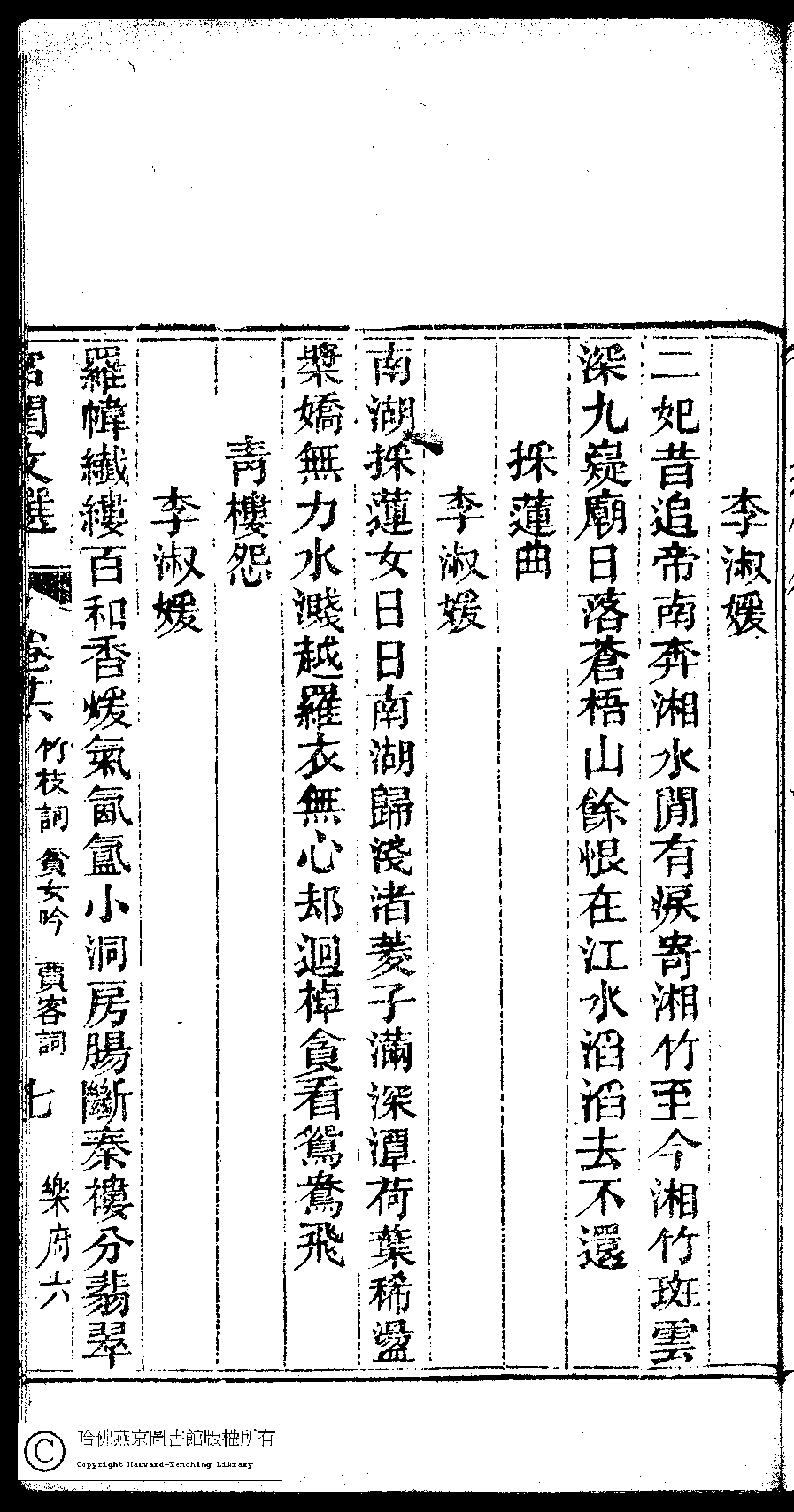 | (PRINT FRIENDLY VERSION) 宮閨文選:二十六卷,姓氏小錄 : 一卷(清周壽昌輯訂)。道光二十六年(1846)開雕 ![]() 頁碼 : 16.7a | 点 击 放 大 | 宮閨文選:二十六卷,姓氏小錄 : 一卷(清周壽昌輯訂)。道光二十六年(1846)開雕![]() 頁碼 : 16.6b | 点 击 放 大 | 返回 |