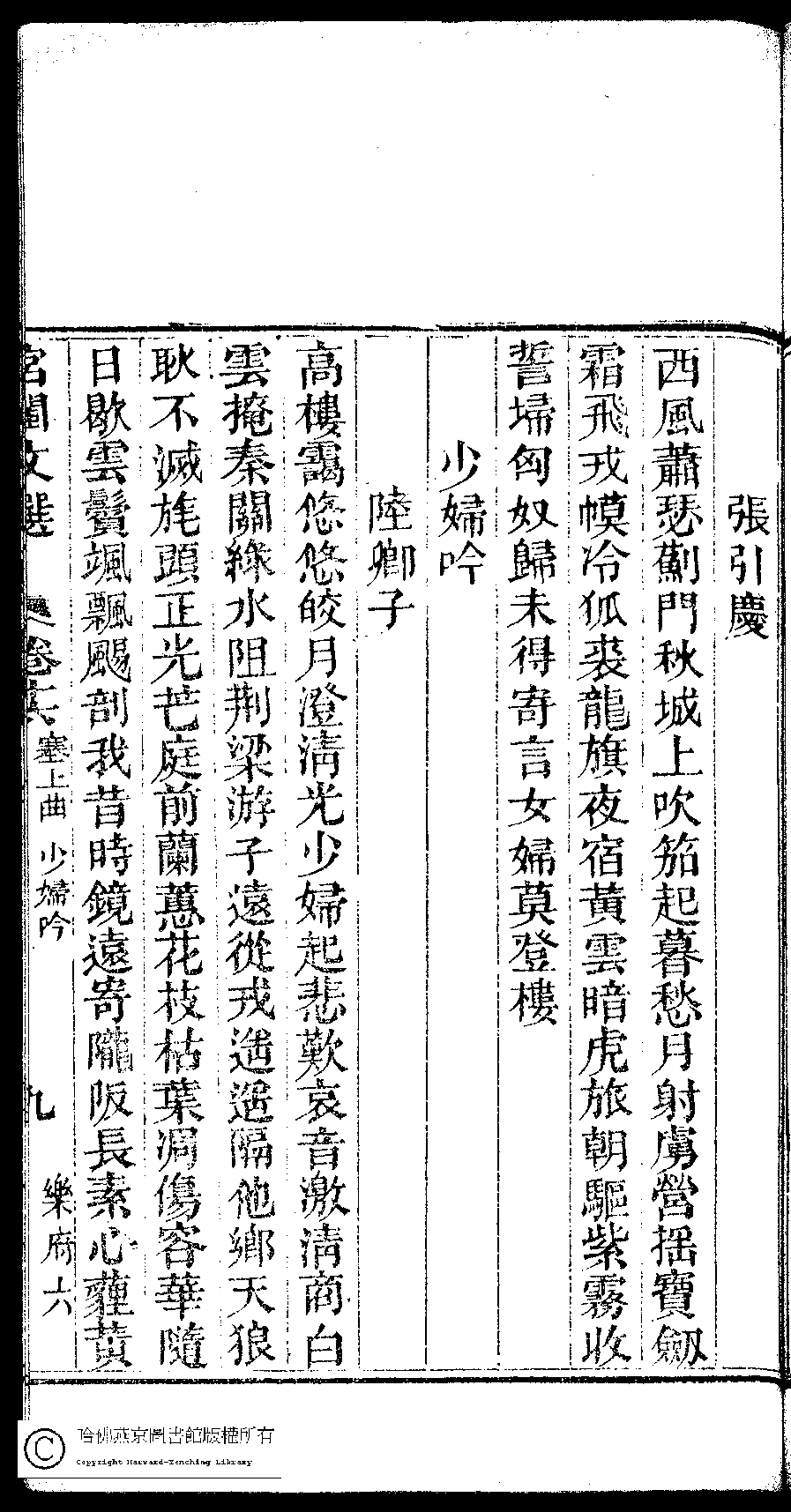 | (PRINT FRIENDLY VERSION) 宮閨文選:二十六卷,姓氏小錄 : 一卷(清周壽昌輯訂)。道光二十六年(1846)開雕 ![]() 頁碼 : 16.9b | 点 击 放 大 | 宮閨文選:二十六卷,姓氏小錄 : 一卷(清周壽昌輯訂)。道光二十六年(1846)開雕![]() 頁碼 : 16.9a | 点 击 放 大 | 返回 |