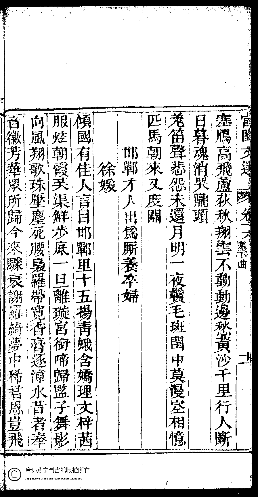 | (PRINT FRIENDLY VERSION) 宮閨文選:二十六卷,姓氏小錄 : 一卷(清周壽昌輯訂)。道光二十六年(1846)開雕 ![]() 頁碼 : 16.12a | 点 击 放 大 | 宮閨文選:二十六卷,姓氏小錄 : 一卷(清周壽昌輯訂)。道光二十六年(1846)開雕![]() 頁碼 : 16.11b | 点 击 放 大 | 返回 |