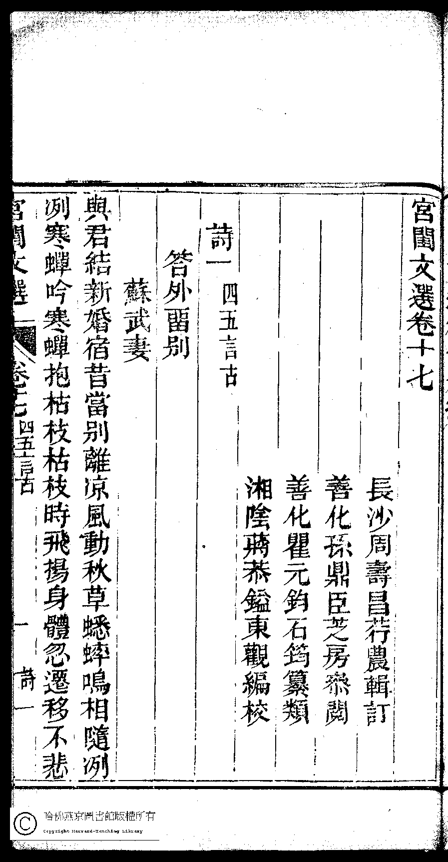 詩詞 [宮閨文選卷十七 詩一 四五言古]