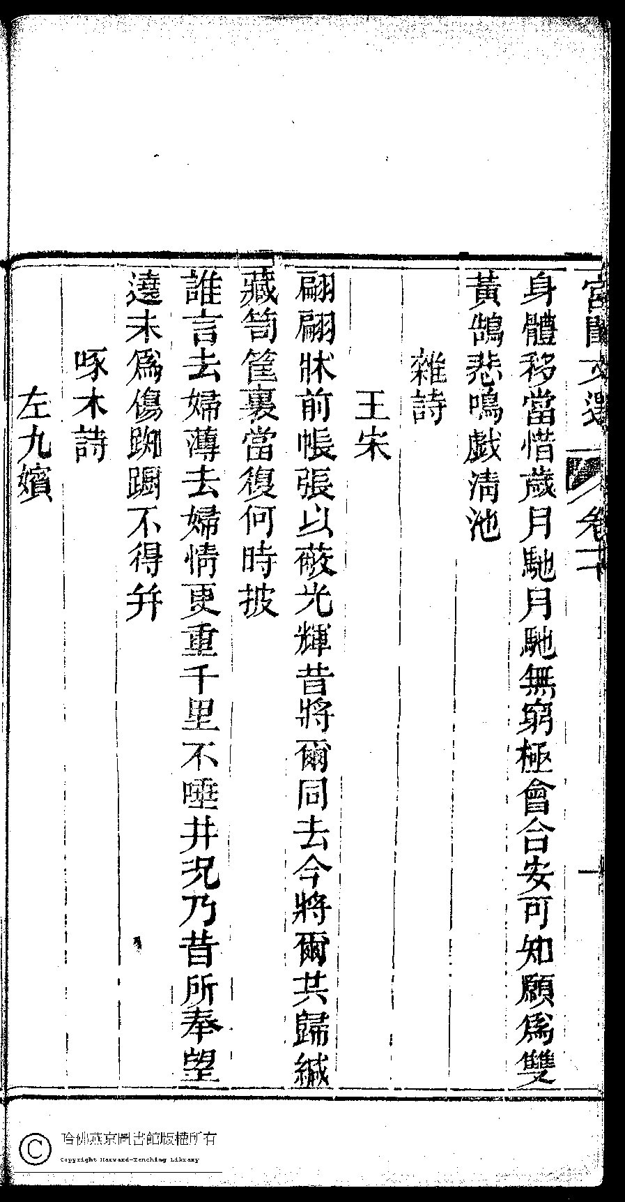 | (PRINT FRIENDLY VERSION) 宮閨文選:二十六卷,姓氏小錄 : 一卷(清周壽昌輯訂)。道光二十六年(1846)開雕 ![]() 頁碼 : 17.2a | 点 击 放 大 | 宮閨文選:二十六卷,姓氏小錄 : 一卷(清周壽昌輯訂)。道光二十六年(1846)開雕![]() 頁碼 : 17.1b | 点 击 放 大 | 返回 |