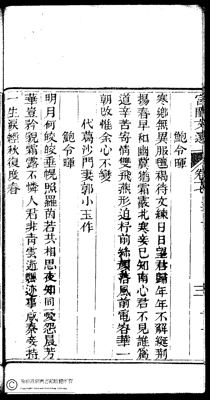 | (PRINT FRIENDLY VERSION) 宮閨文選:二十六卷,姓氏小錄 : 一卷(清周壽昌輯訂)。道光二十六年(1846)開雕 ![]() 頁碼 : 17.4a | 点 击 放 大 | 宮閨文選:二十六卷,姓氏小錄 : 一卷(清周壽昌輯訂)。道光二十六年(1846)開雕![]() 頁碼 : 17.3b | 点 击 放 大 | 返回 |