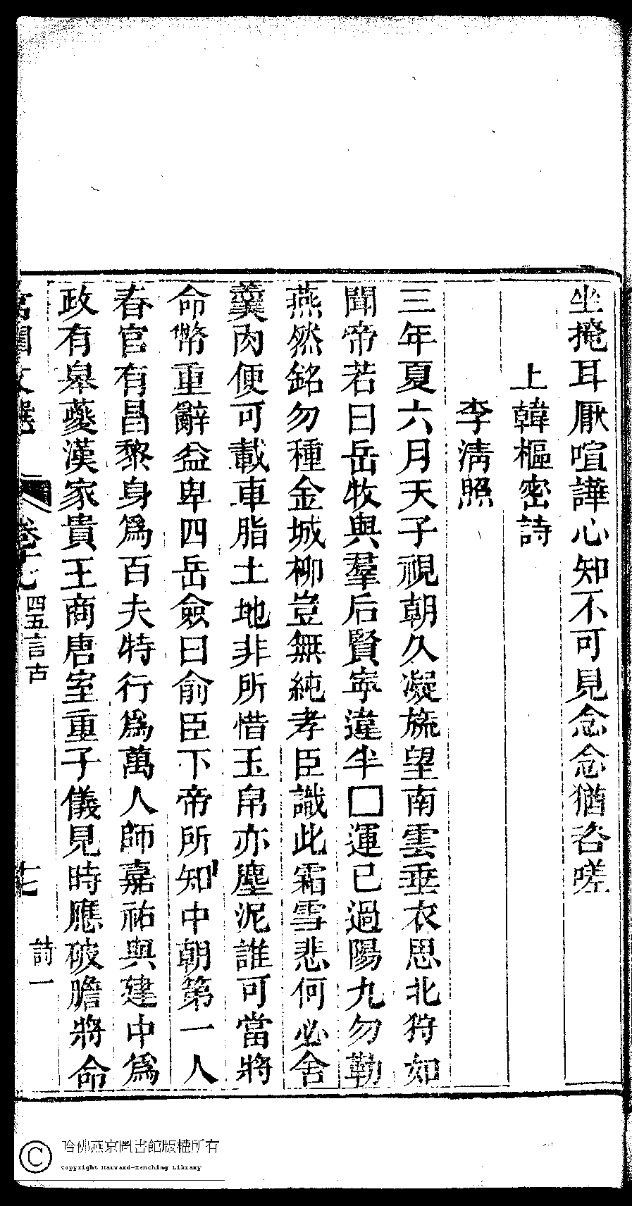 | (PRINT FRIENDLY VERSION) 宮閨文選:二十六卷,姓氏小錄 : 一卷(清周壽昌輯訂)。道光二十六年(1846)開雕 ![]() 頁碼 : 17.17b | 点 击 放 大 | 宮閨文選:二十六卷,姓氏小錄 : 一卷(清周壽昌輯訂)。道光二十六年(1846)開雕![]() 頁碼 : 17.17a | 点 击 放 大 | 返回 |